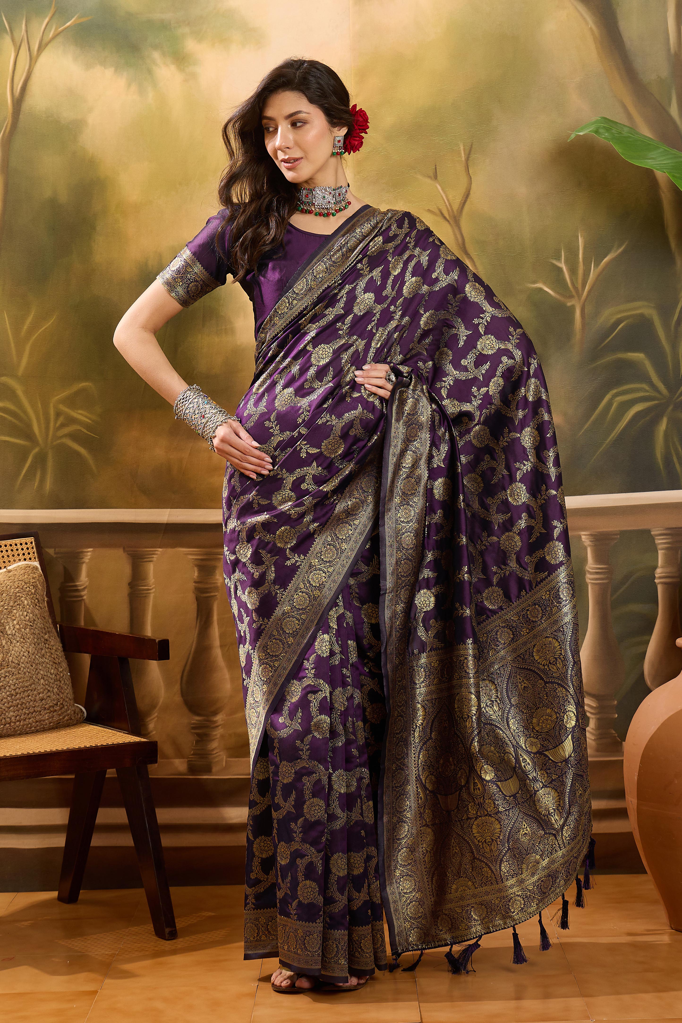 • Saree Work-Weaving ,Blouse Work- Banarasi Jacquard