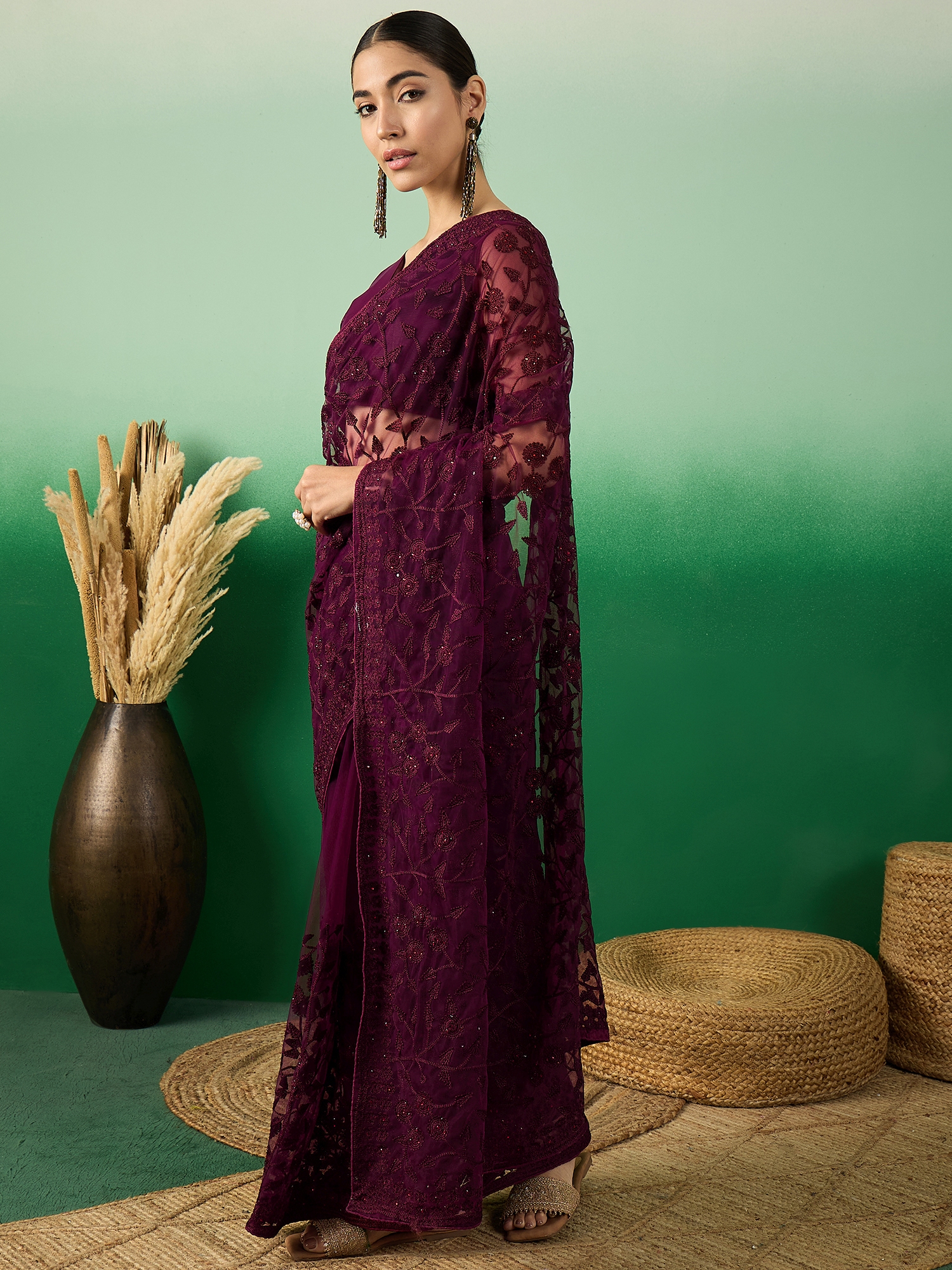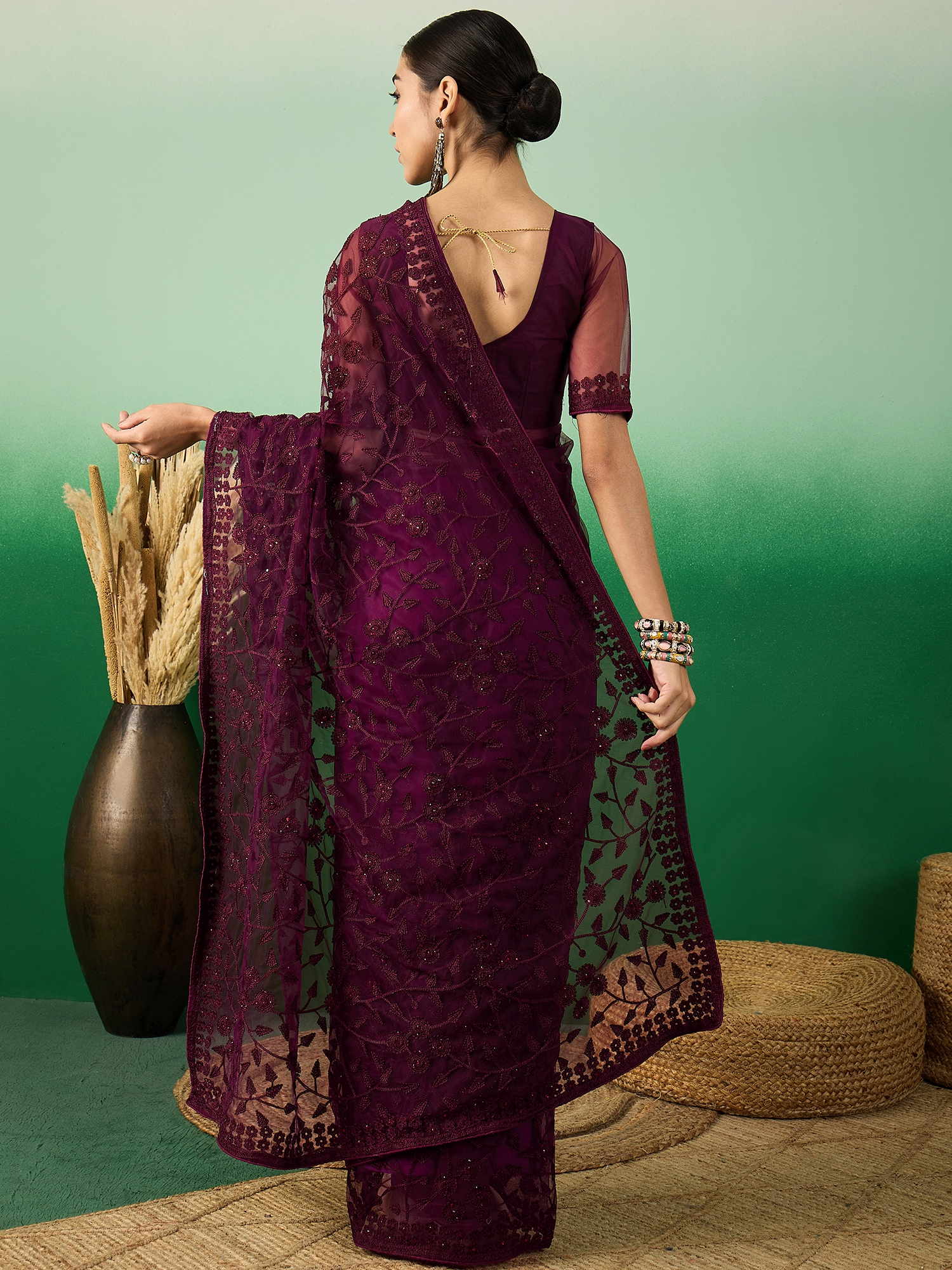 AASTHA FASHION Fashion Dream Womens Wine Net Saree | Soft & Elegant Traditional Wear
