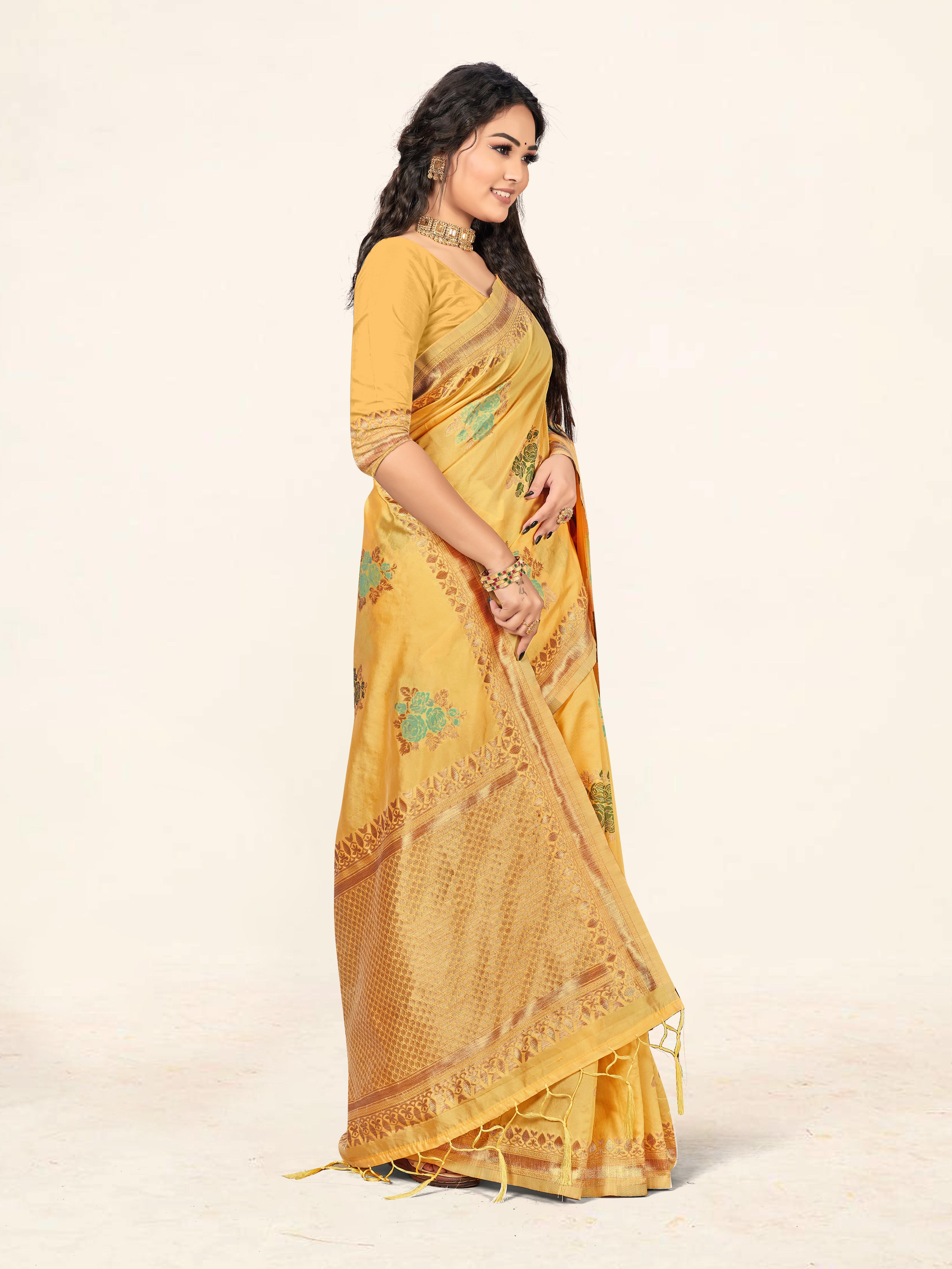 AASTHA FASHION Fashion Dream Womens Yellow Cotton Saree | Soft & Elegant Traditional Wear