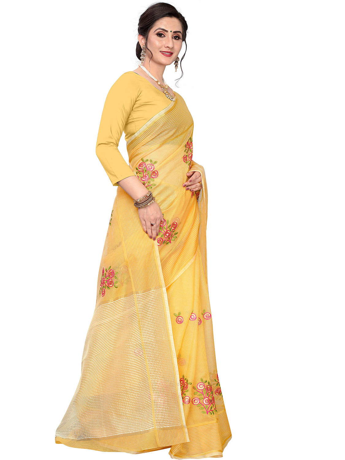 AASTHA FASHION Fashion Dream Womens Yellow Super Net Saree | Soft & Elegant Traditional Wear