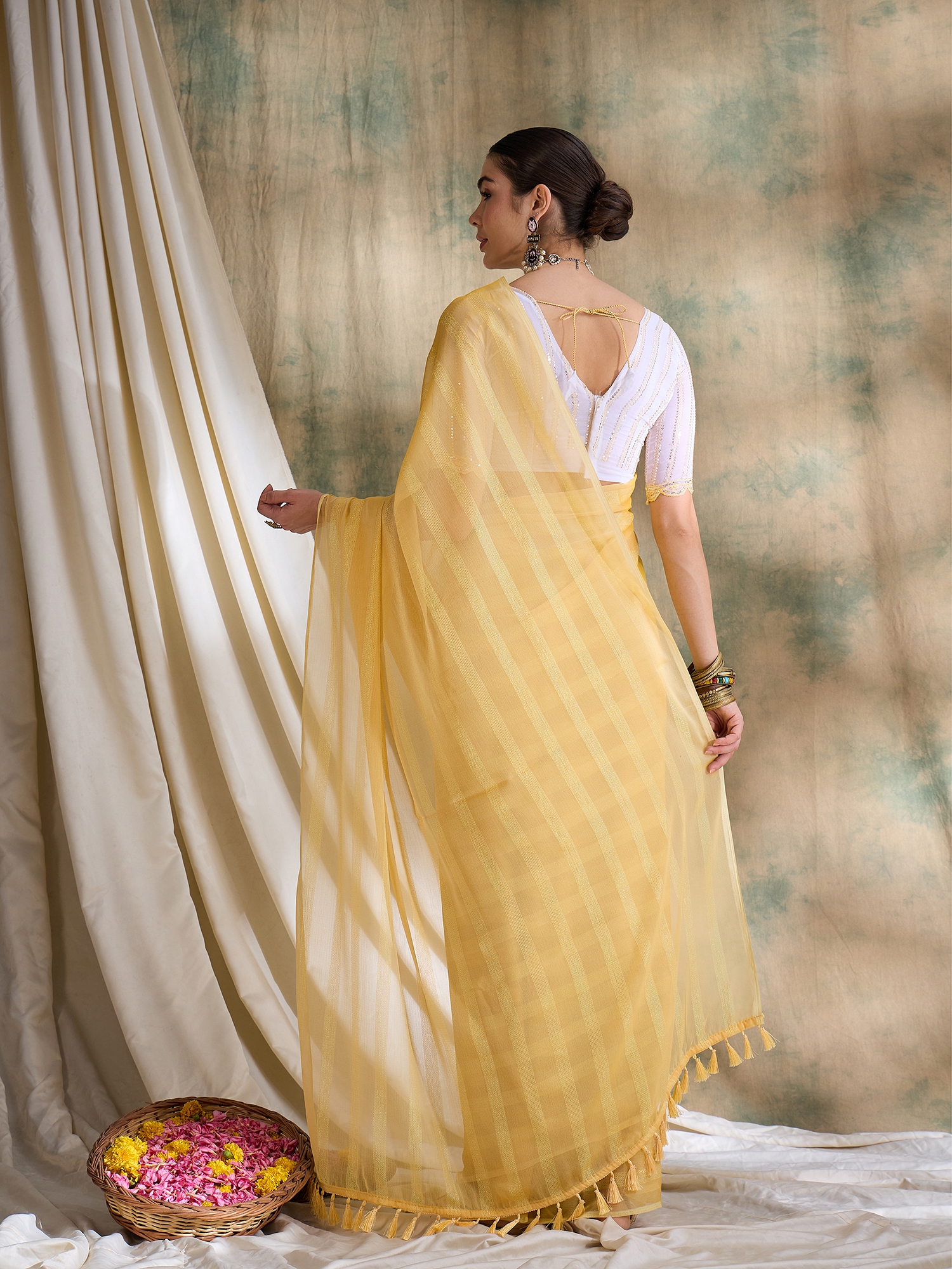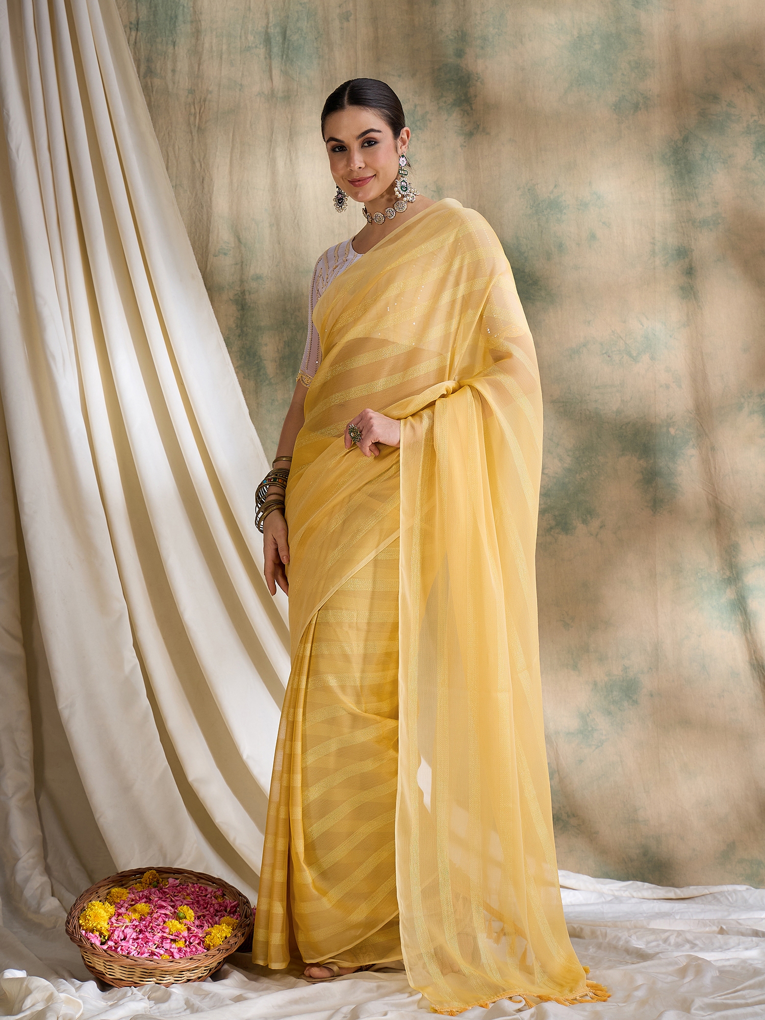 AASTHA FASHION Fashion Dream Womens Yellow Vichitra Silk Saree | Soft & Elegant Traditional Wear