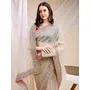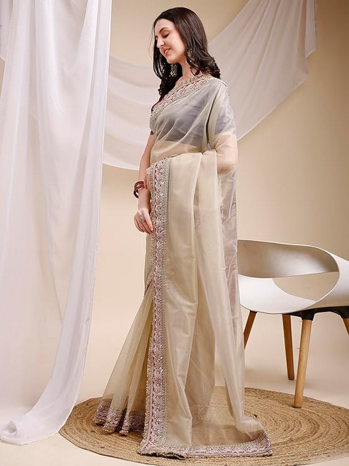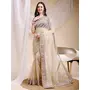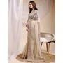 Beige Color Space Silk Fabric Ethnic Embroidered Partywear Saree