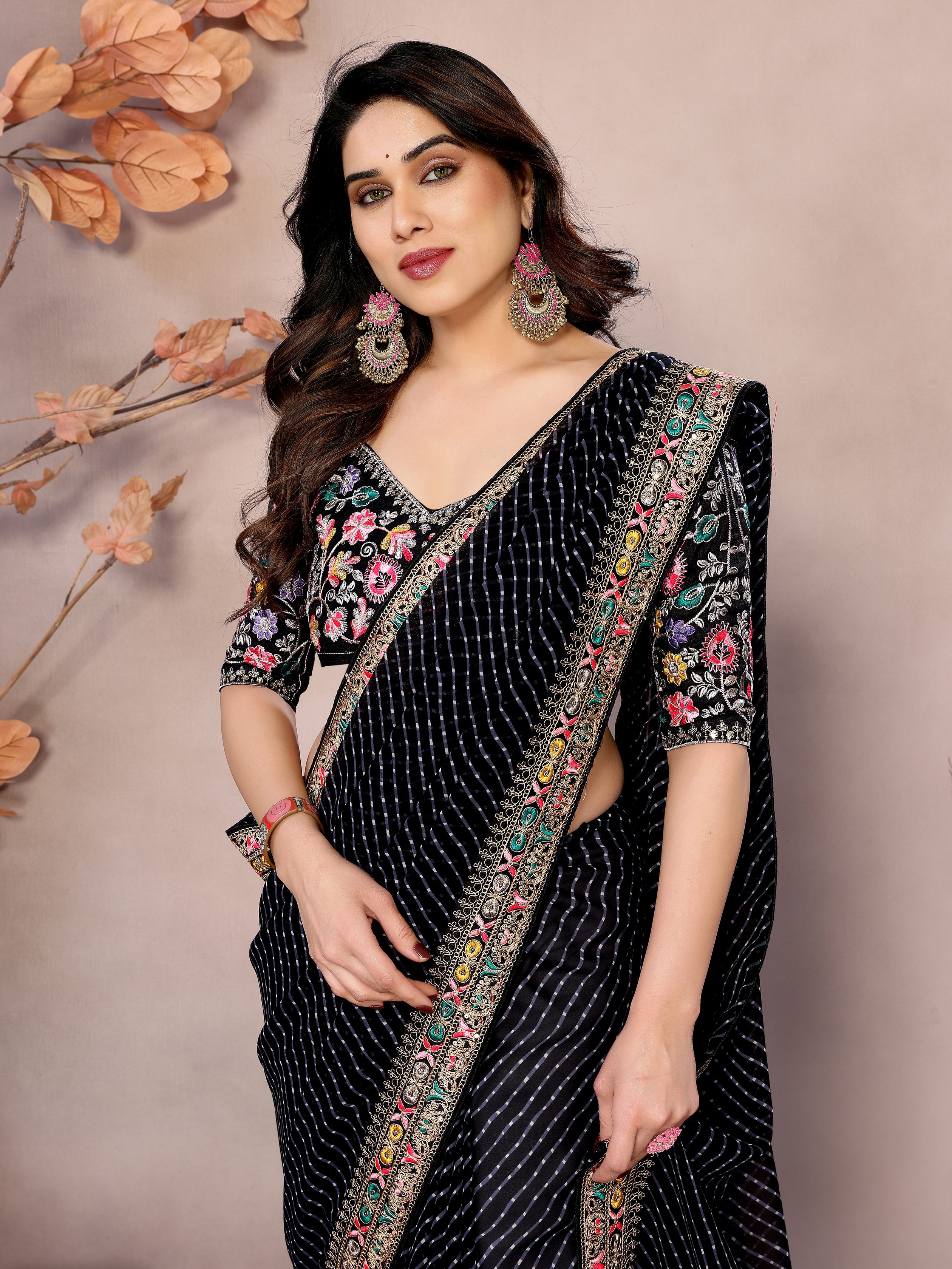 Black Color Georgette Fabric Designer Embroidered Traditional Leheria Saree