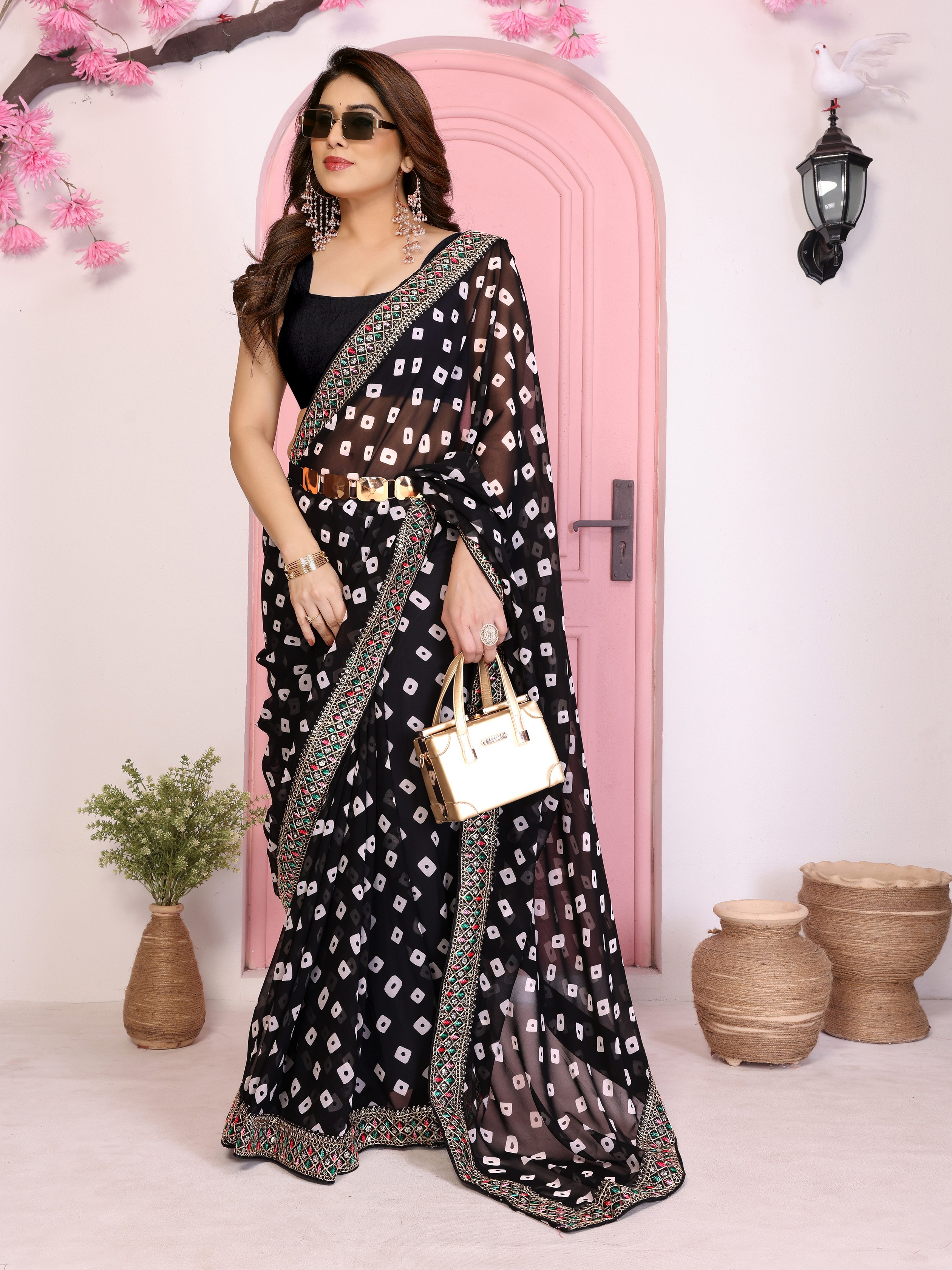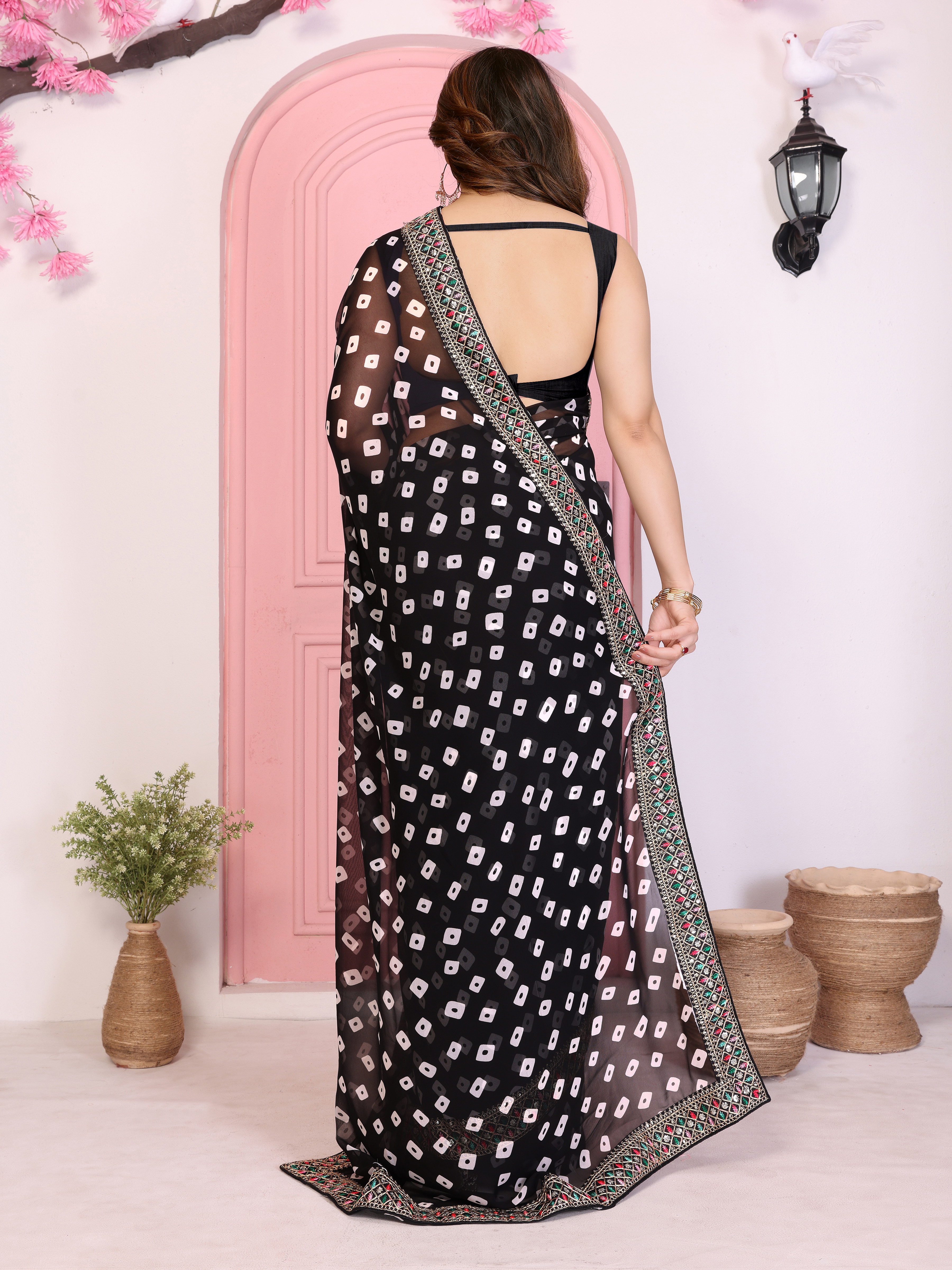 Black Color Georgette Fabric Embroidered Partywear Saree