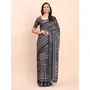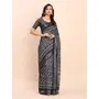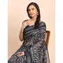 Black Color Linen Cotton fabric Woven Border Saree With Smart Print Designer Looks