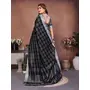 Black Color Linen Cotton Fabric Woven Checks Designer Trendy Ethnic Saree