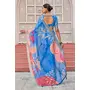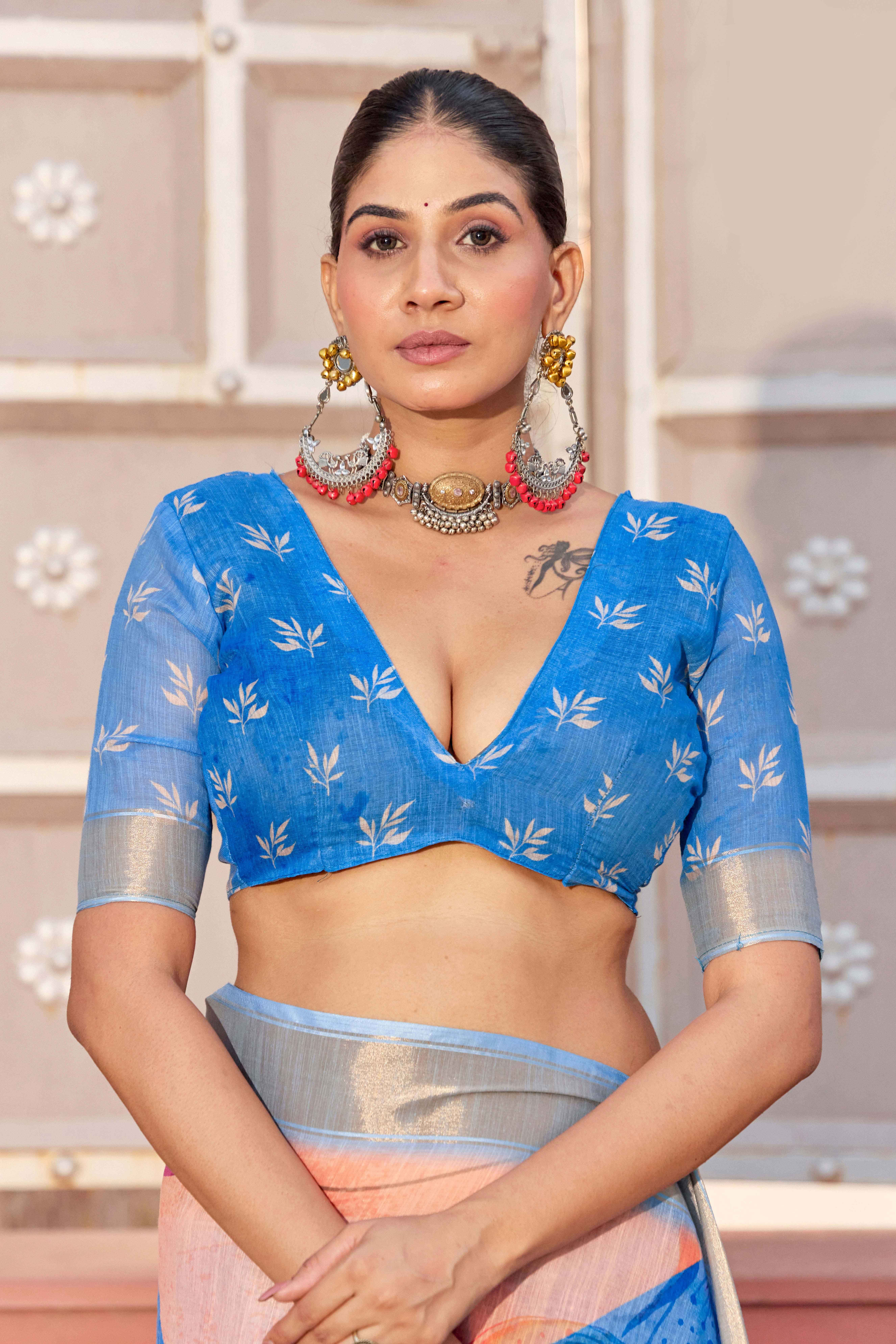 Blue Color Beautiful Linen Silk Fabric Saree With Sophisticated Partywear Saree
