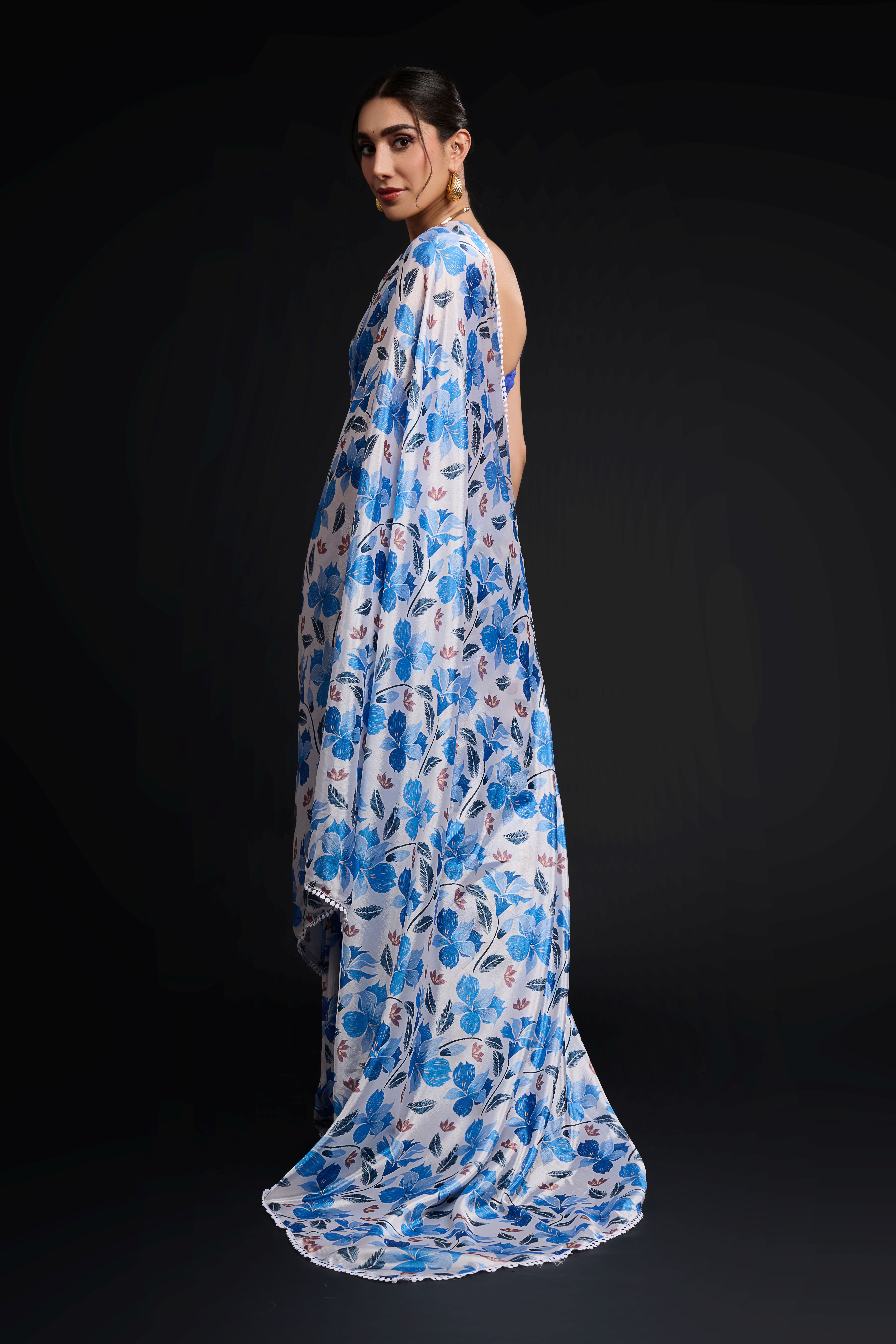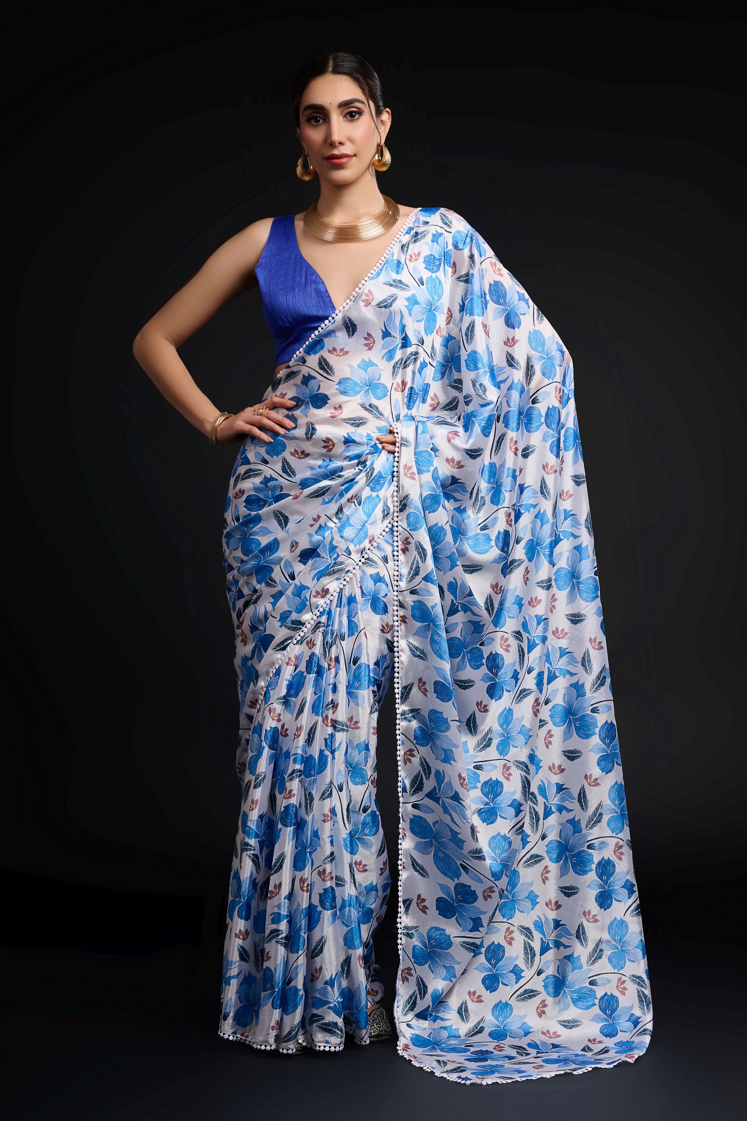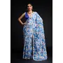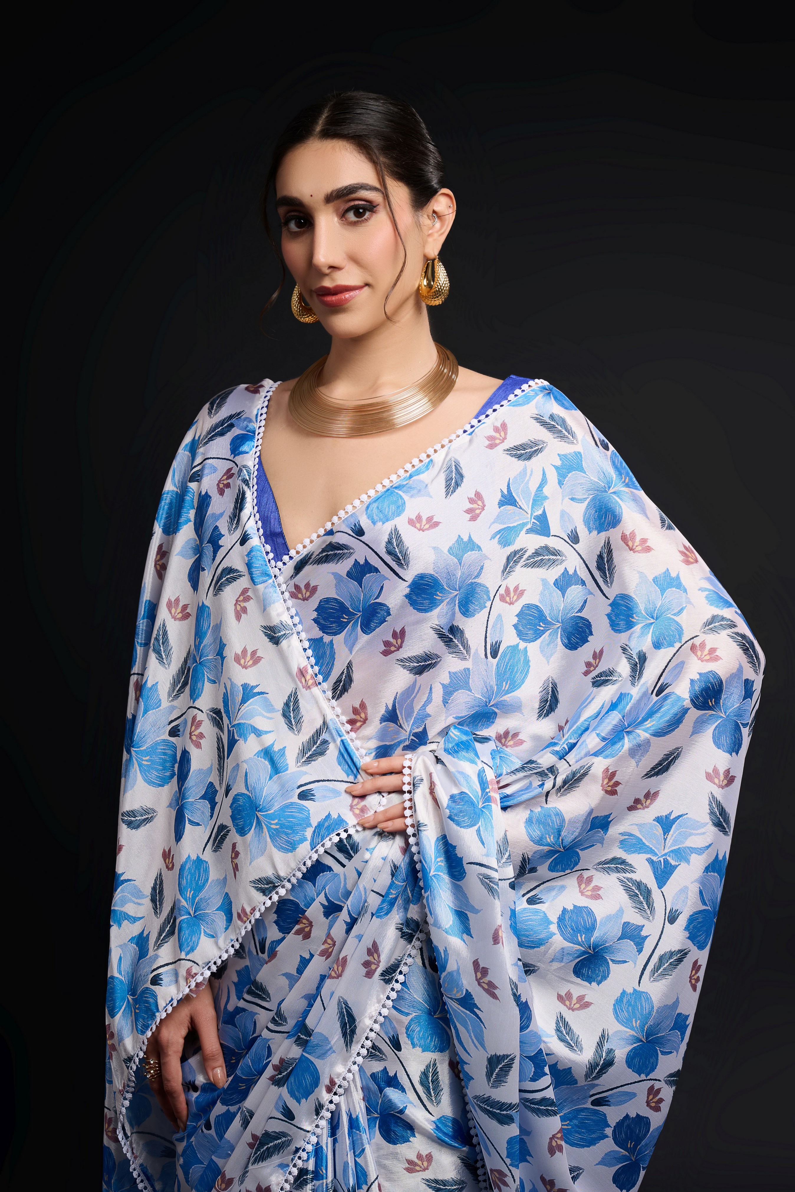 Blue Color Chinon Fabric Designer Digital Printed Ready To Wear Saree