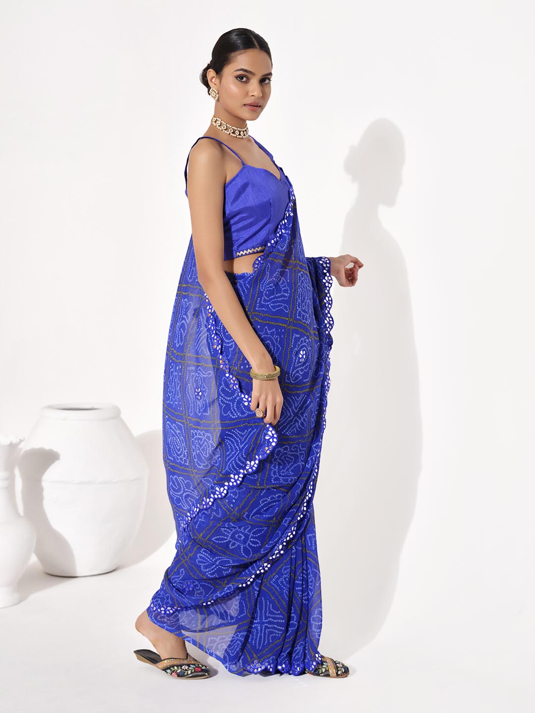 Blue Color Georgette Girlie Designer Printed Saree For Rich Sophisticated Looks