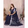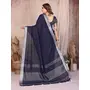 Blue Color Linen Cotton Fabric Woven Silver Jari Designer Ceremonial Saree