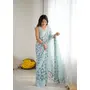Blue Color Moss Satin Patta Fabric Designer Printed Ethnic Partywear Saree