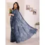 Blue Color Moss Satin Patta Fabric Designer Printed Saree