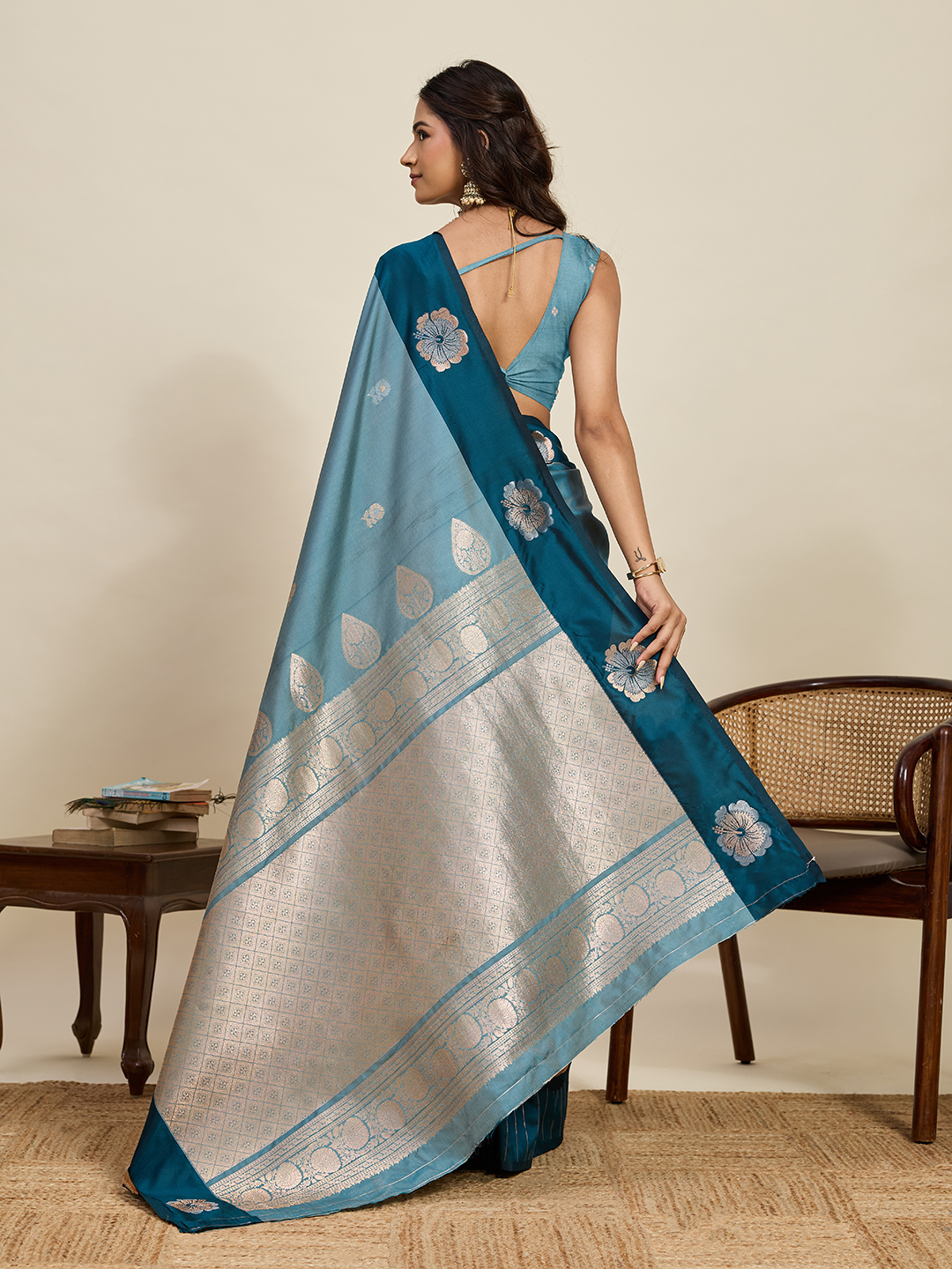Blue Color Soft Silk Fabric Woven Jari Designer Ethnic Indian Saree