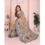 Brown Color Linen Cotton Fabric Designer Printed Formal Looks Sophisticated Saree