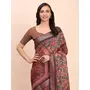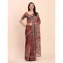 Brown Color Linen Cotton fabric Woven Border Saree With Smart Print Designer Looks