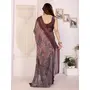 Brown Color Moss Satin Patta Fabric Designer Printed Saree