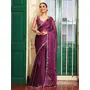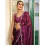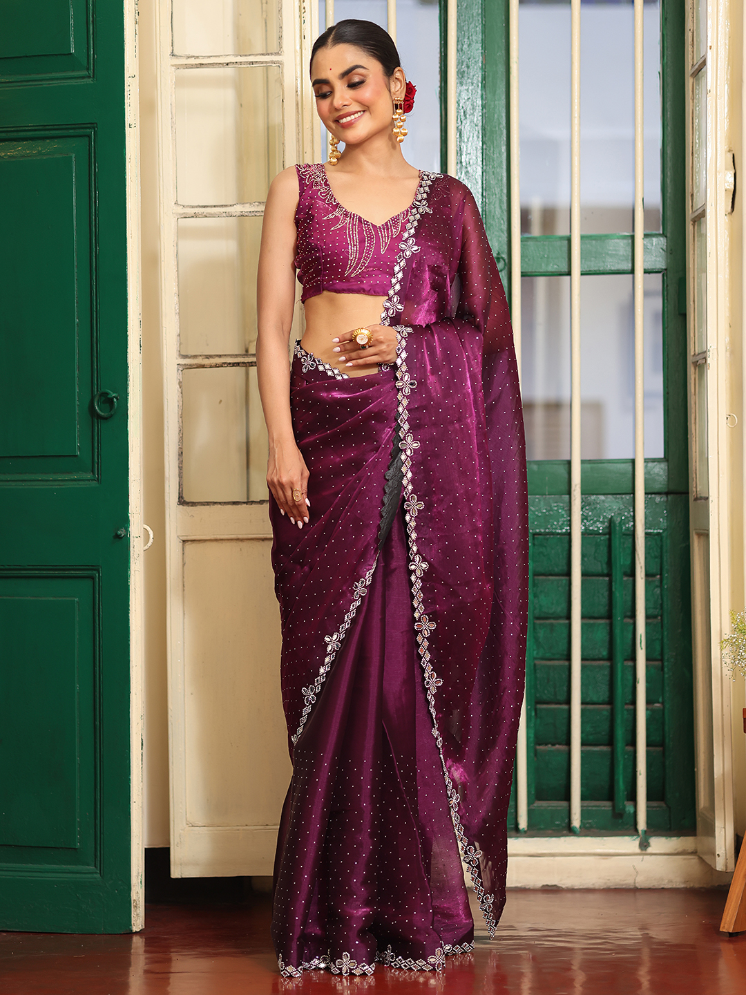 Burgundy Color Organza Fabric Fancy Designer Swarovski Work Ethnic Girlie Saree