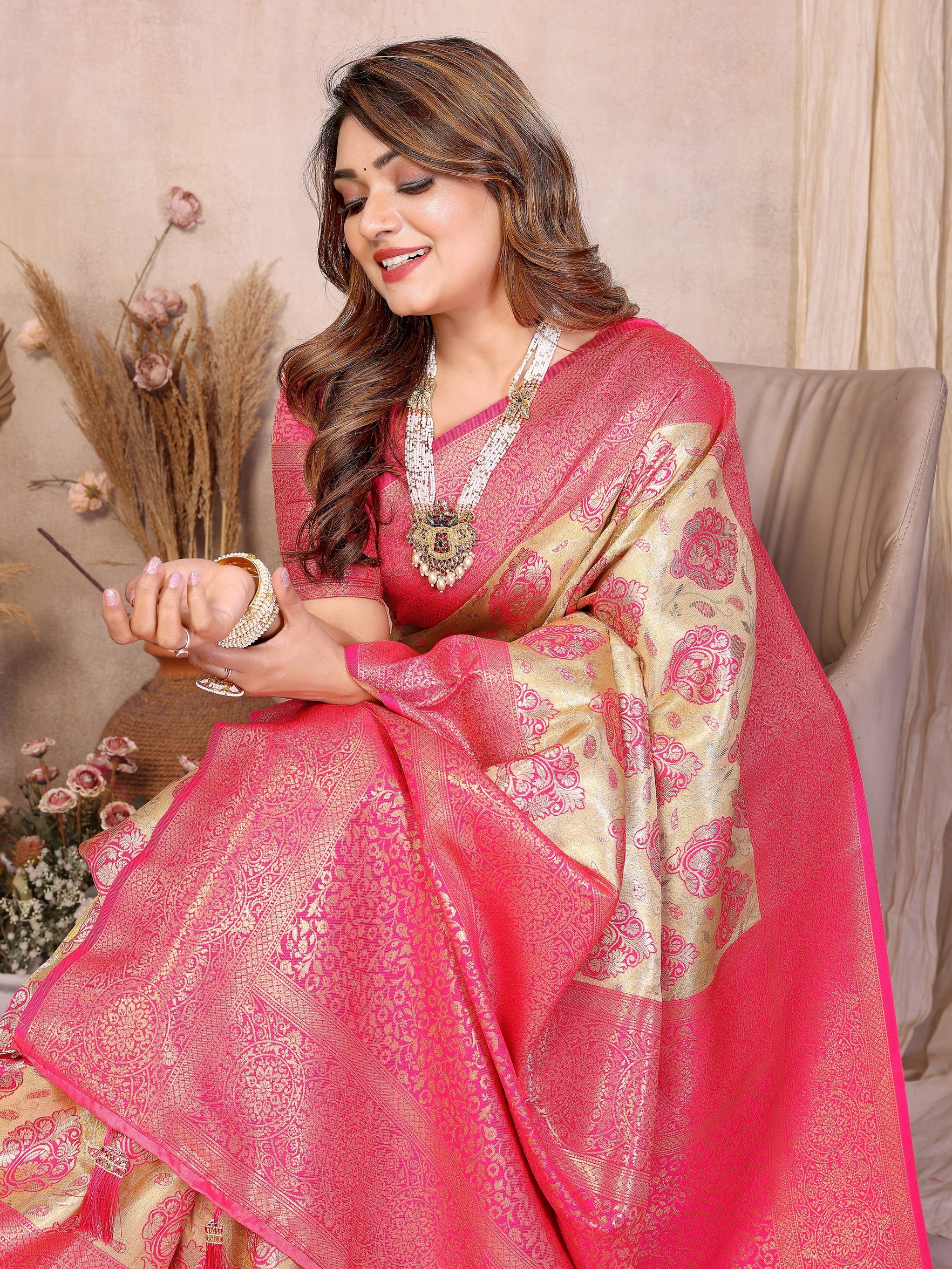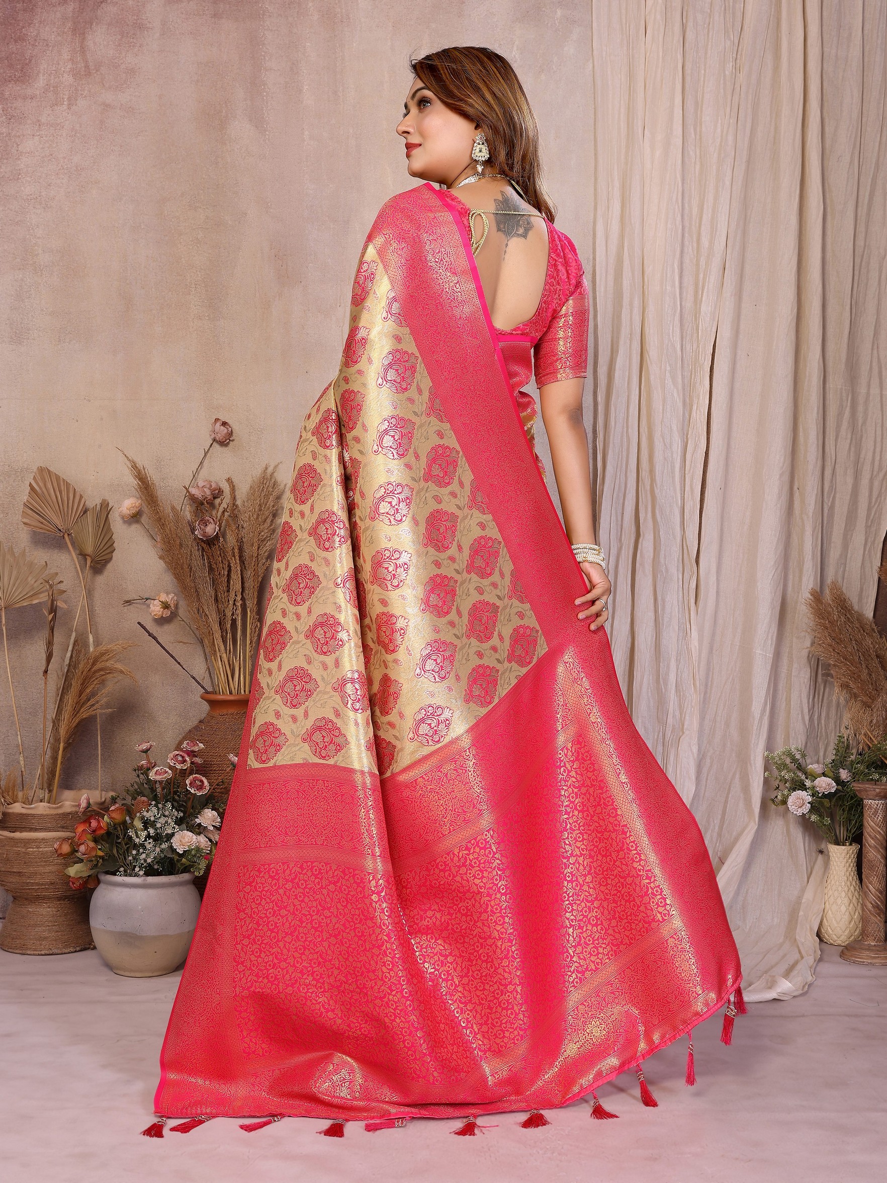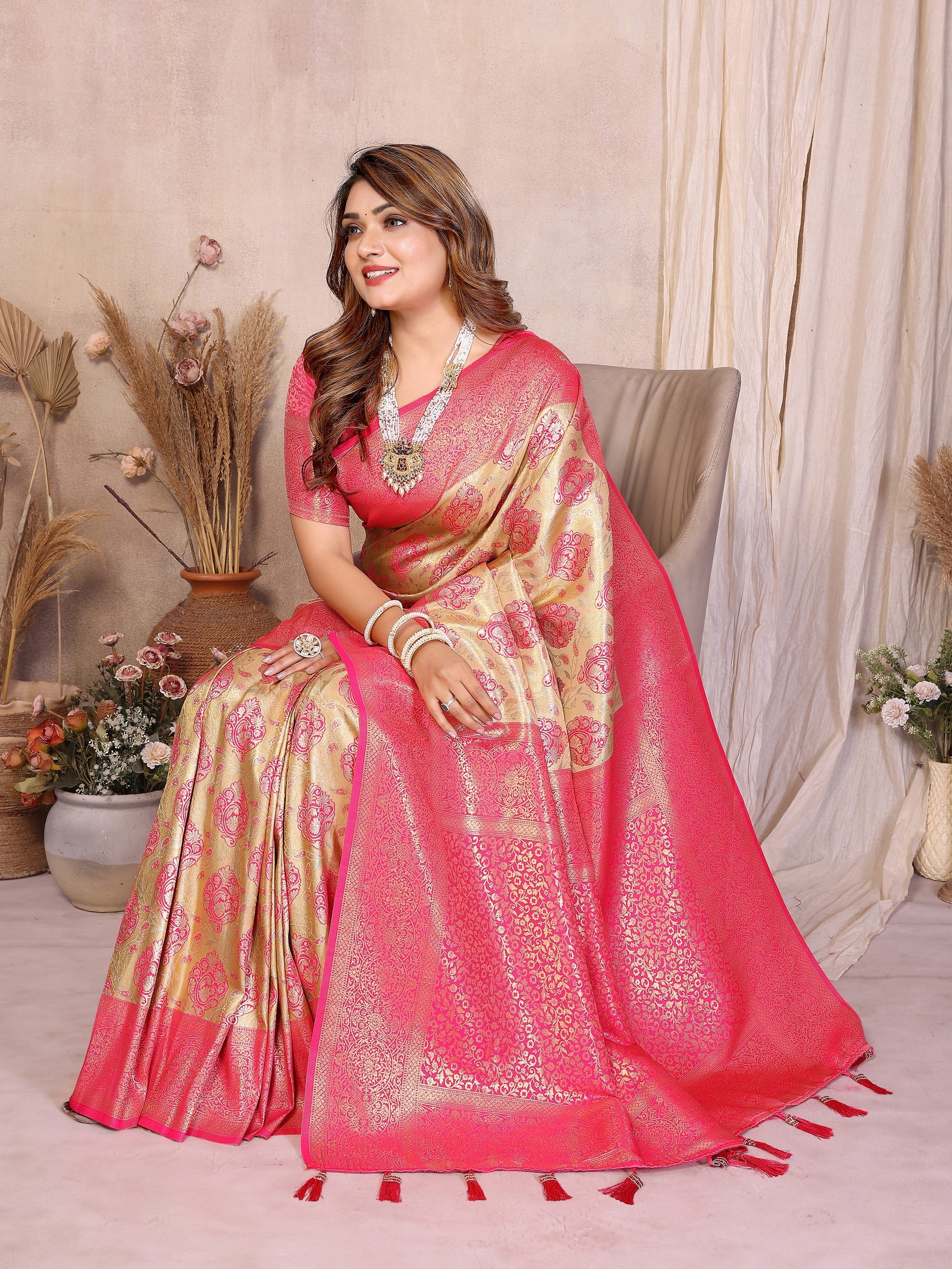 Cream Color Heavy Rich Banarasi Tissue Silk For Ceremonial Traditional Looks