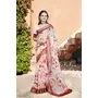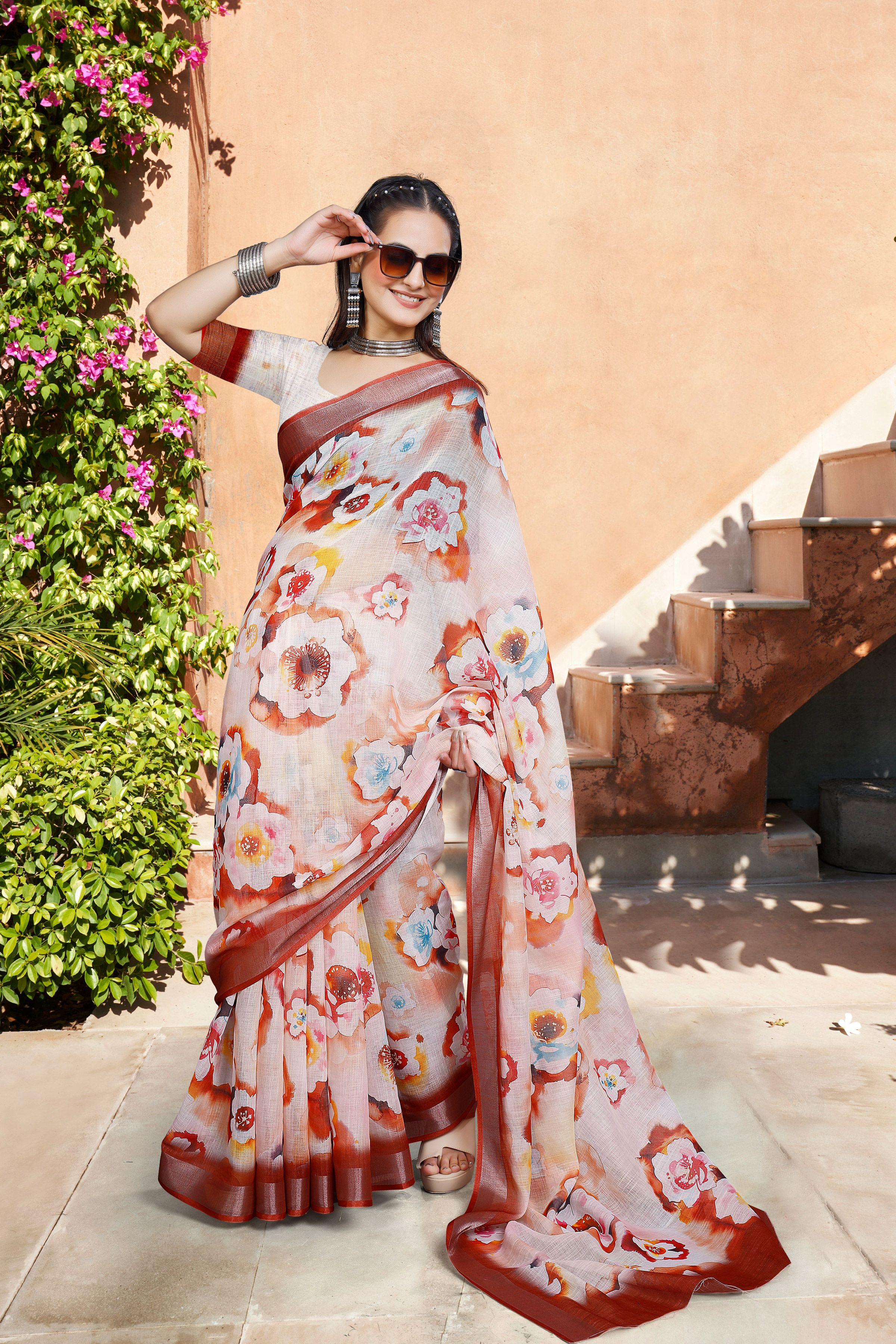 Cream Color Linen Cotton Fabric Woven Border Designer Printed Saree
