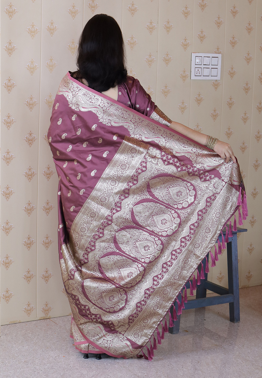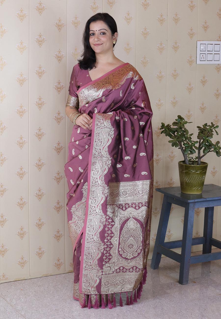 Dull Purple Color Banarasi Silk Saree Woven Silver Jari Designer Ceremonial Partywear Saree