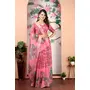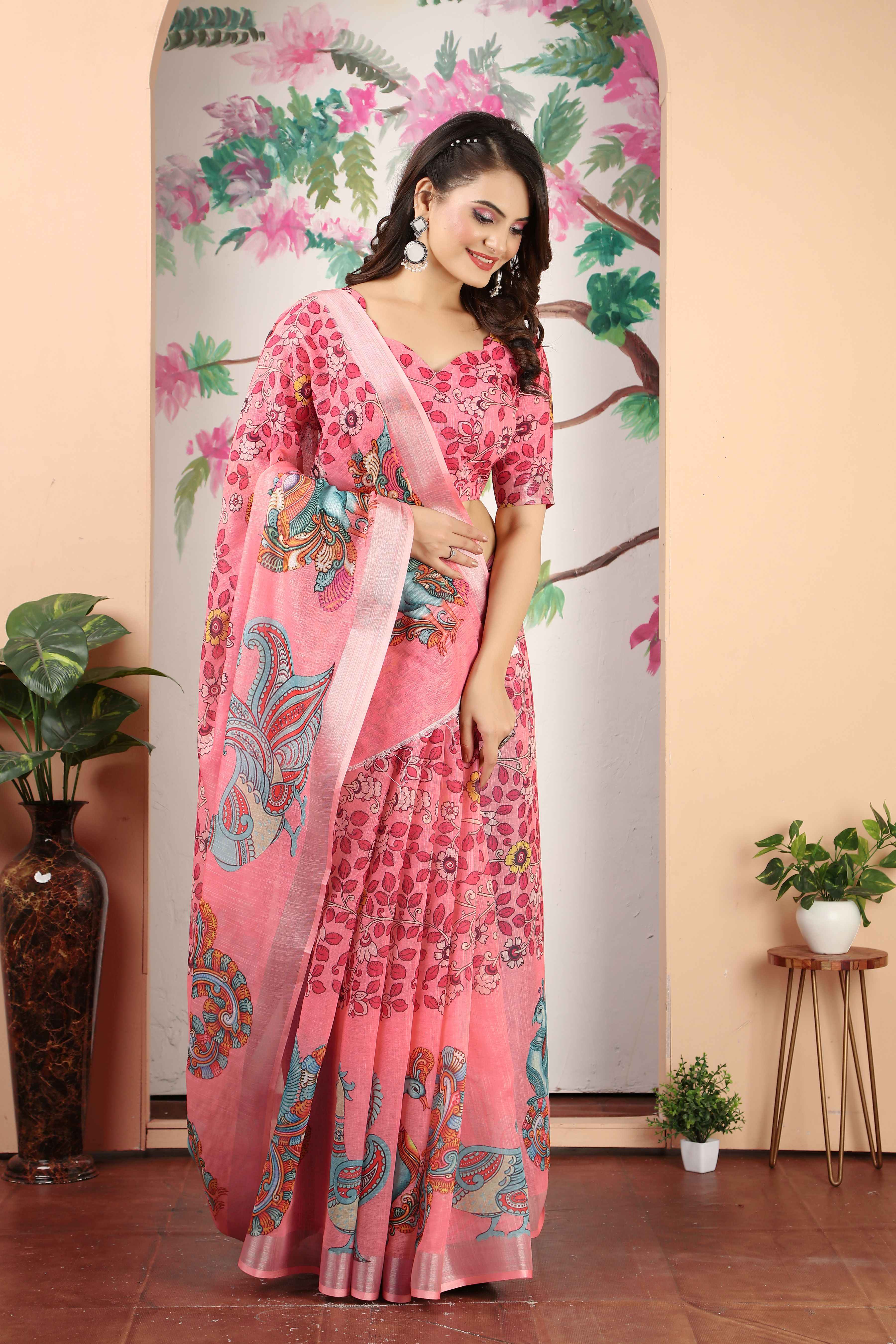 Ethnic Pink Color Beatutiful Linen Cotton Digital Printed Saree