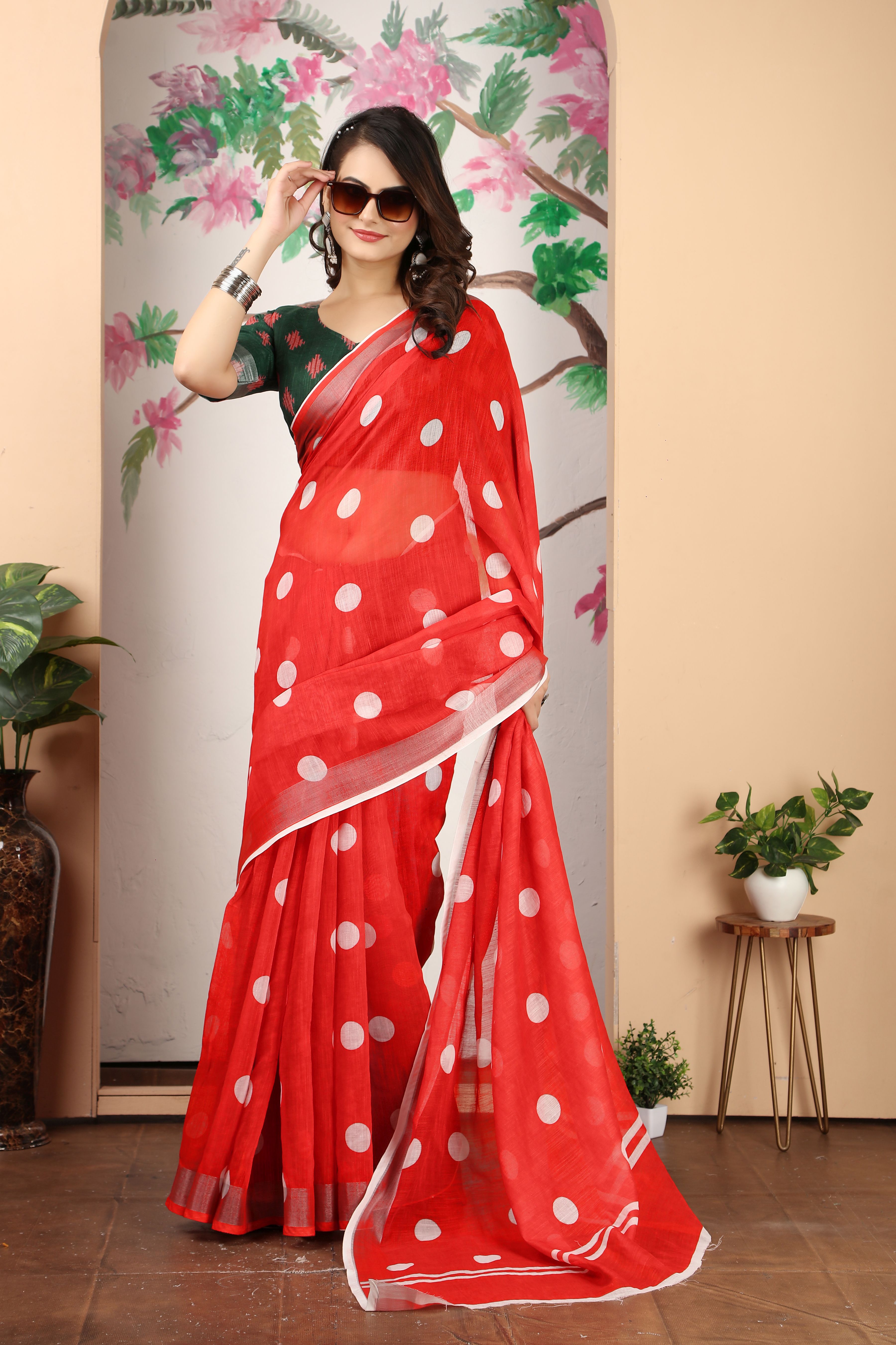 Ethnic Red Color Beatutiful Linen Cotton Digital Printed Saree