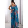 Firozi Color Beautiful floral Printed Ceremonial Georgette Saree