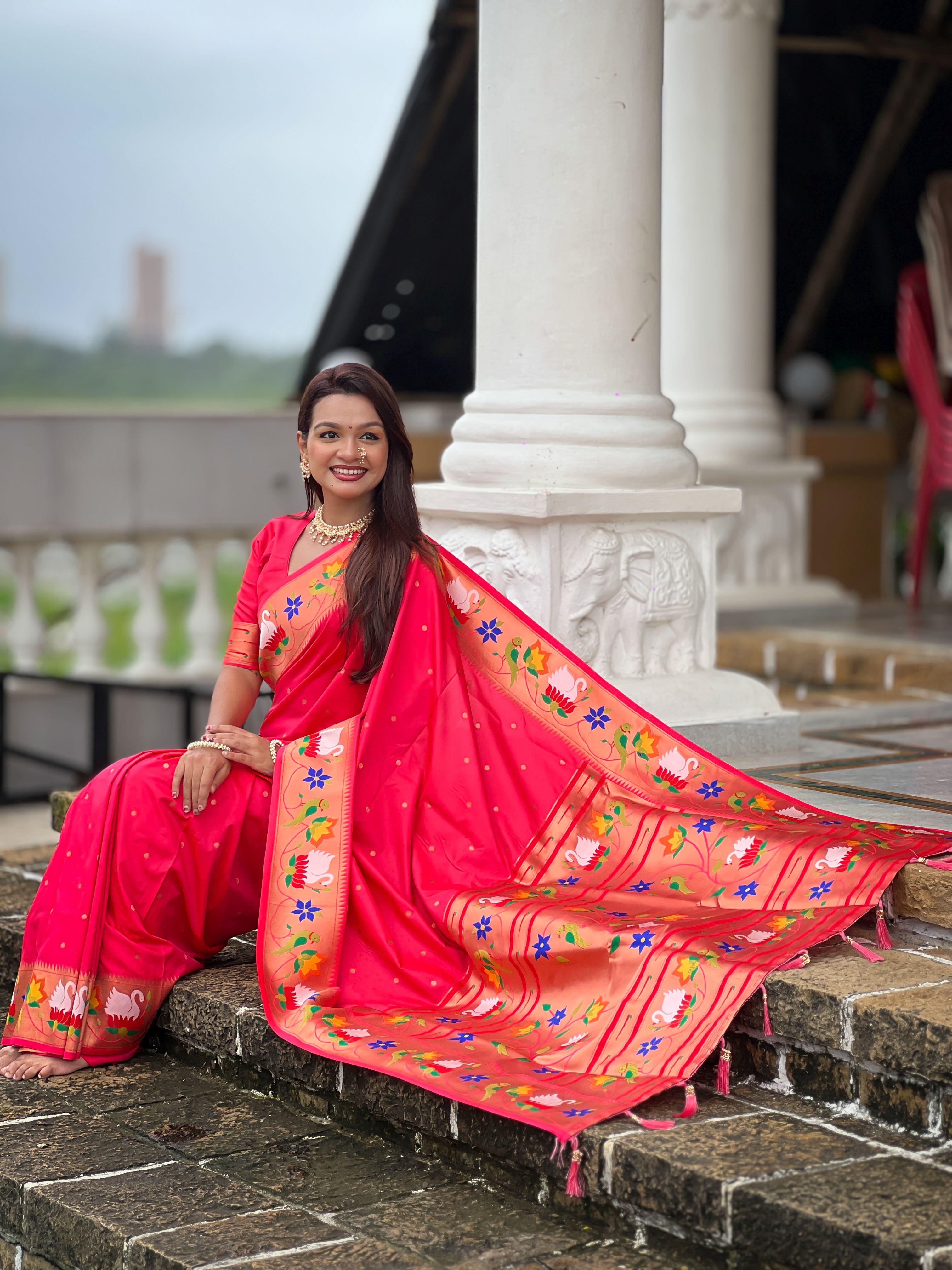 Gajri Color Paithani Silk Woven Meenakari Jacquard Designer Heavy Wedding Special Saree