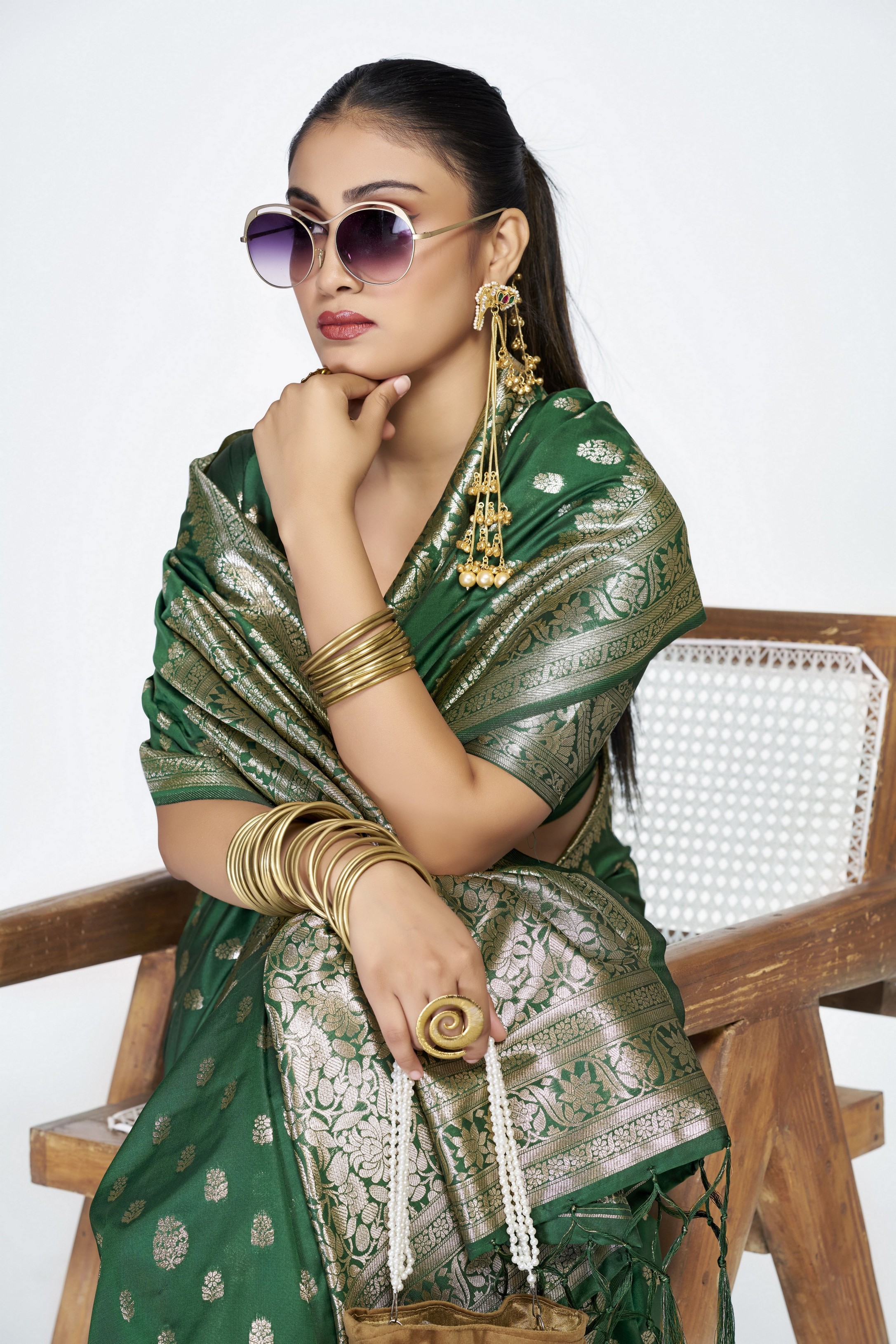 Green Color Banarasi Silk Fabric Woven Jari Butti Designer Celebrity Fancy Saree