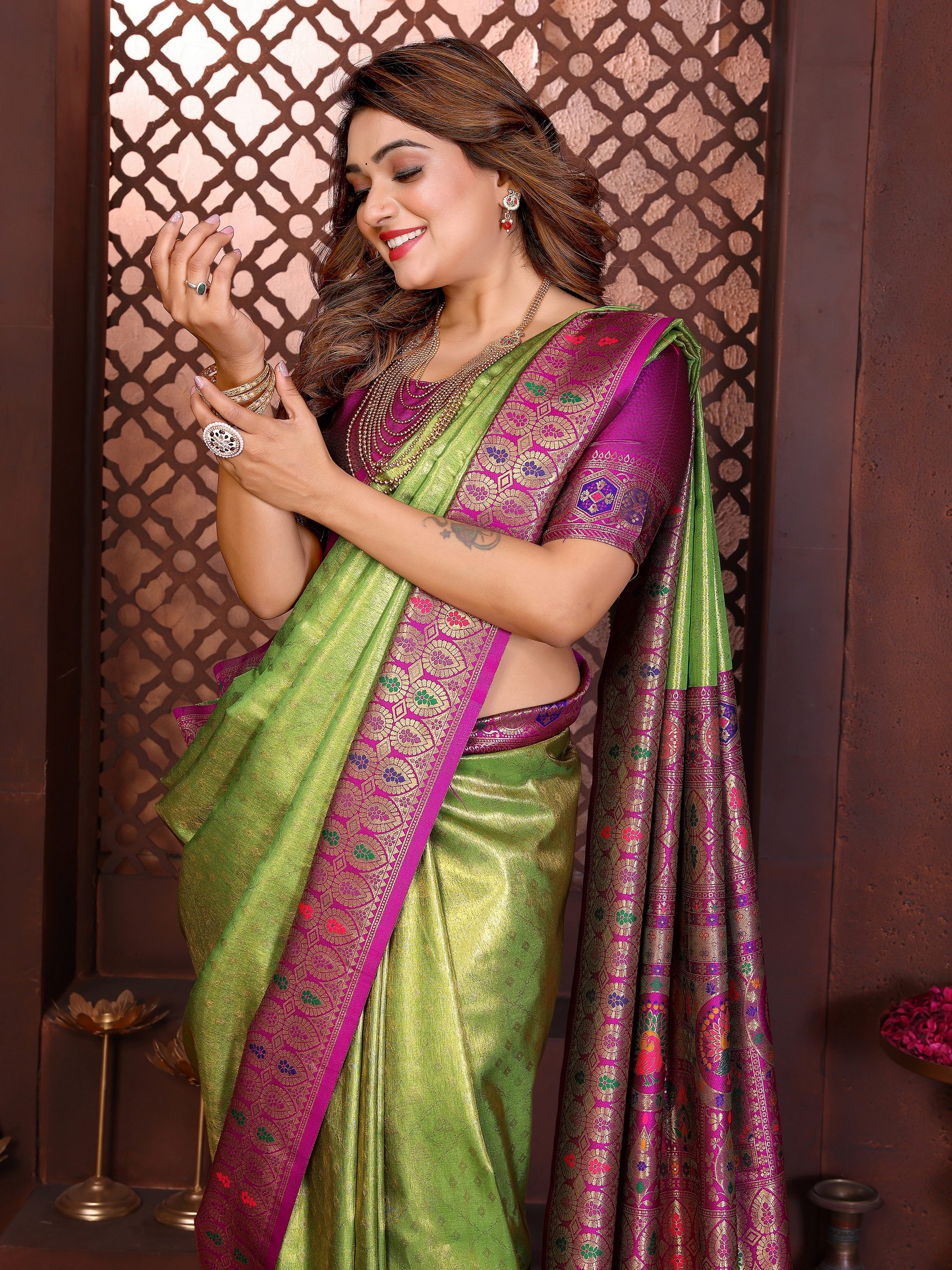 Green Color Banarasi Tissue Silk Fabric Woven Rich Paithani Designer Saree
