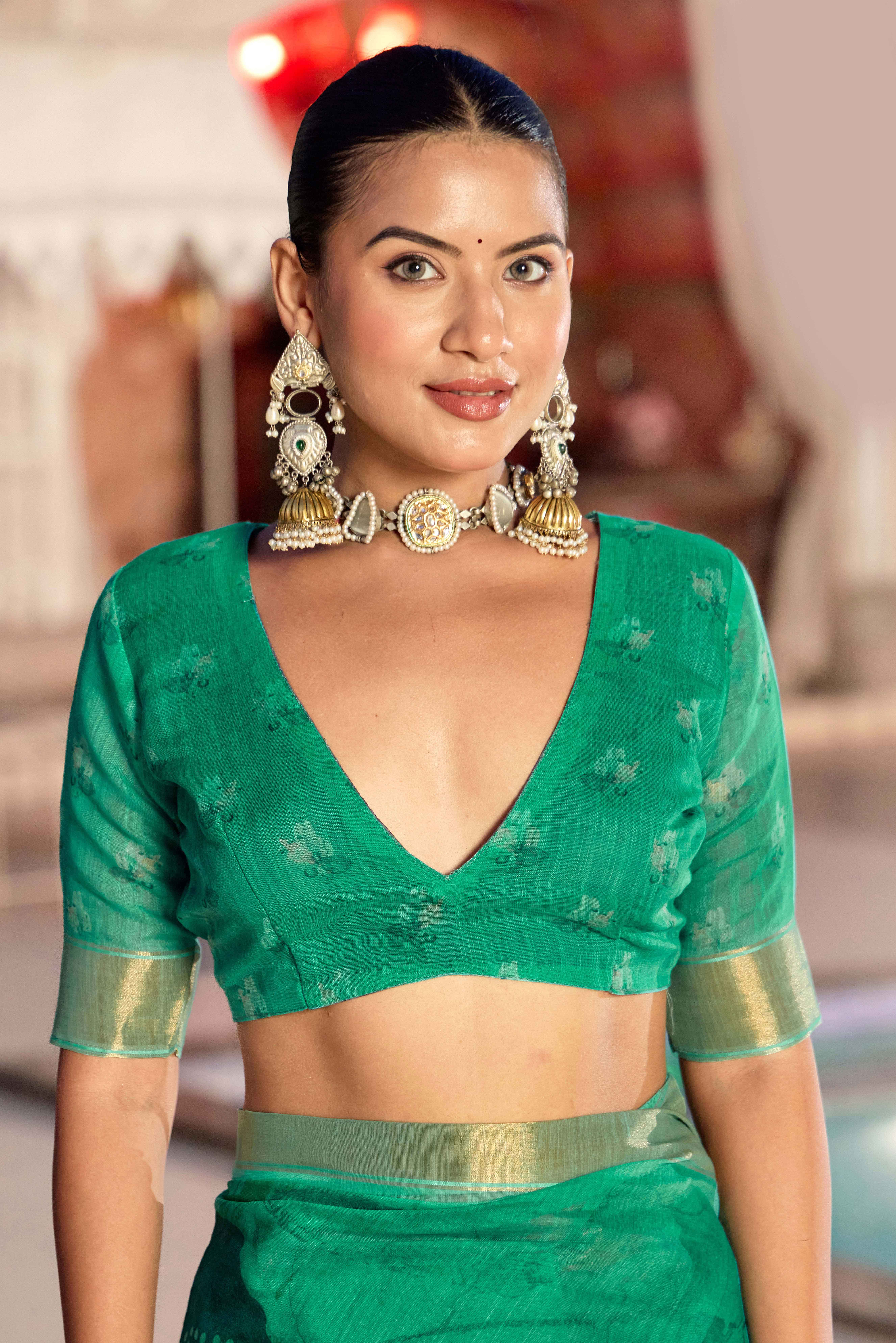 Green Color Beautiful Linen Silk Fabric Saree With Sophisticated Partywear Saree