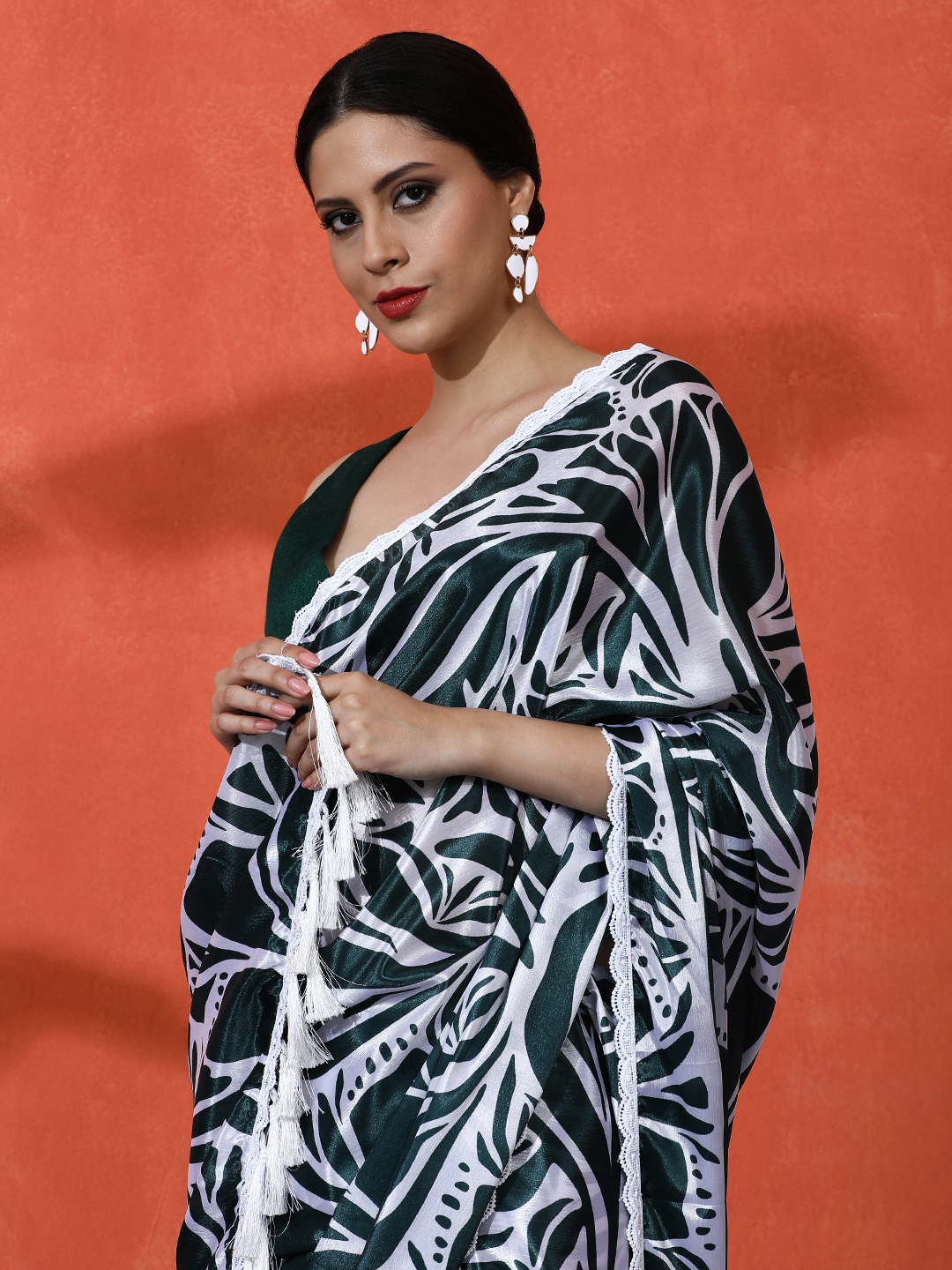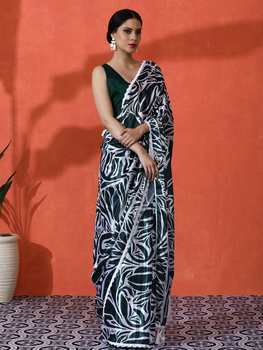 Green Color Chinon Fabric Designer Digital Printed Saree For Ceremonial Looks