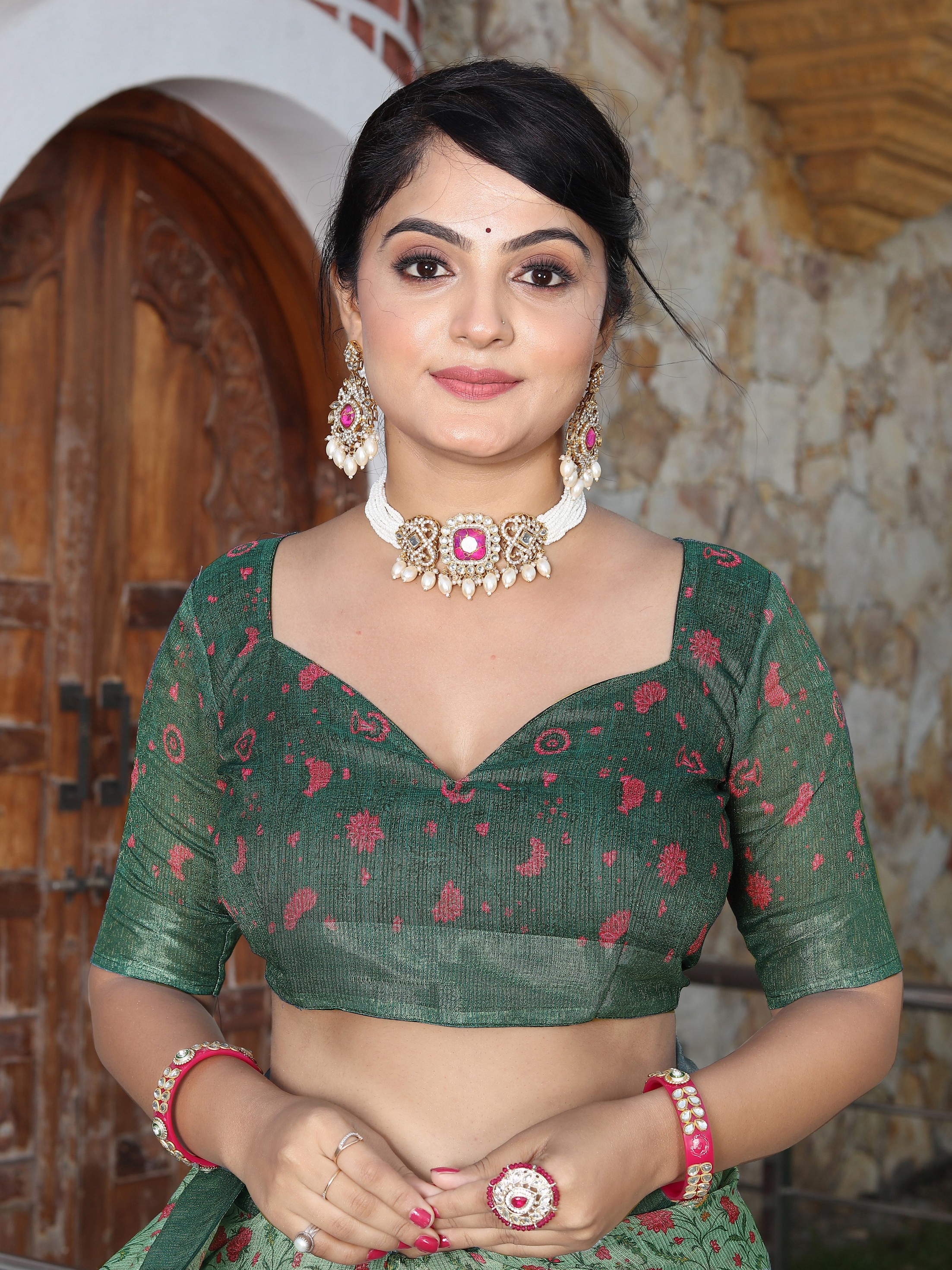 Look These Festive Saree in Fine Colored.These Saree Are Cotton Shimmer And Blouse is Fabricated On Cotton Shimmer Pair.Its Beautified With Wevon Jari Border With Designer Printed.