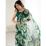 Green Color Georgette Fabric Designe Floral Printed Bollywood Style Saree