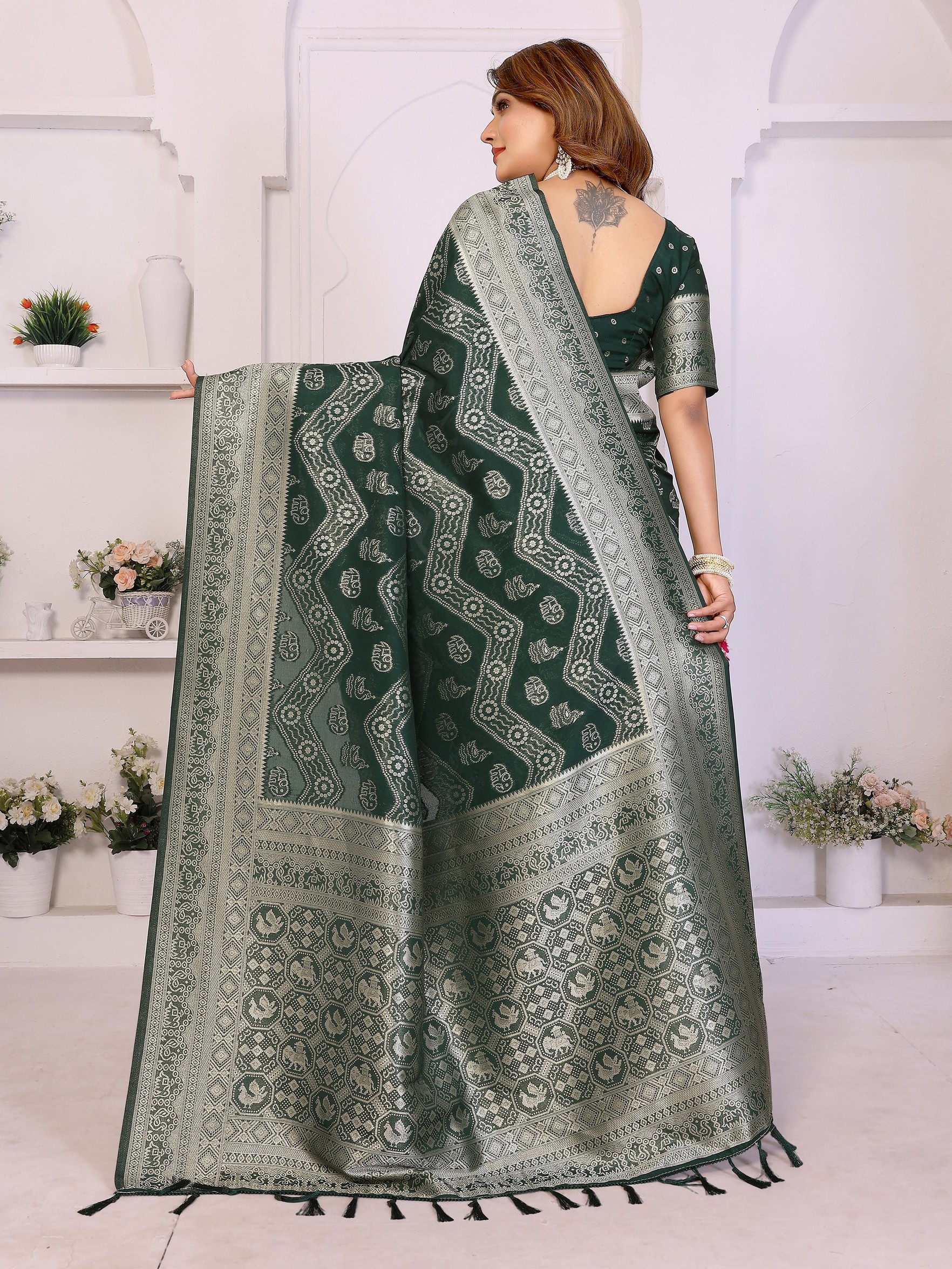 Green Color Georgette Silk Fabric Woven Laheriya Jari Designer Saree