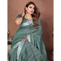 Green Color Linen Cotton Fabric Woven Checks Designer Trendy Ethnic Saree