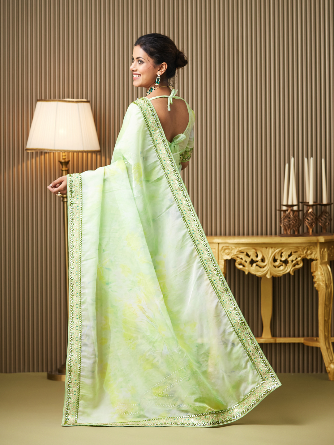 Green Color Organza fabric Embroidered Embellished Work Ceremonial Saree