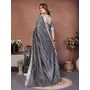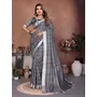 Grey Color Linen Cotton Fabric Woven Checks Designer Trendy Ethnic Saree