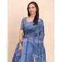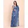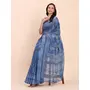 Indigo Blue Color Linen Cotton fabric Woven Border Saree With Smart Print Designer Looks