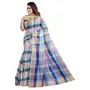 Karru Krafft Women's Handloom Pure Linen Soft Checkered Blue Saree With Blouse Piece for Festive Saree Navaratri Saree Wedding Saree