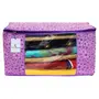 Material: Non Woven Color: Pink Purple & Ivory Red. Design- Metalic Printed .Package Contents: 2 Piece Saree Cover .Size: 43 cm x 35 cm x 22 cm .Made from durable wear and tear-resistant non-woven fabric. Lightweight and flexible saree covers .Carefully stitched to offer additional strength. Ideal for storing sarees and protecting them from dust and insects .Transparent see-through window for easy identification of contents. Durable zipper for easy opening and closing.