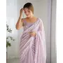 Lavender Color Georgette Fabric Beautiful Partywear Embroidered Saree