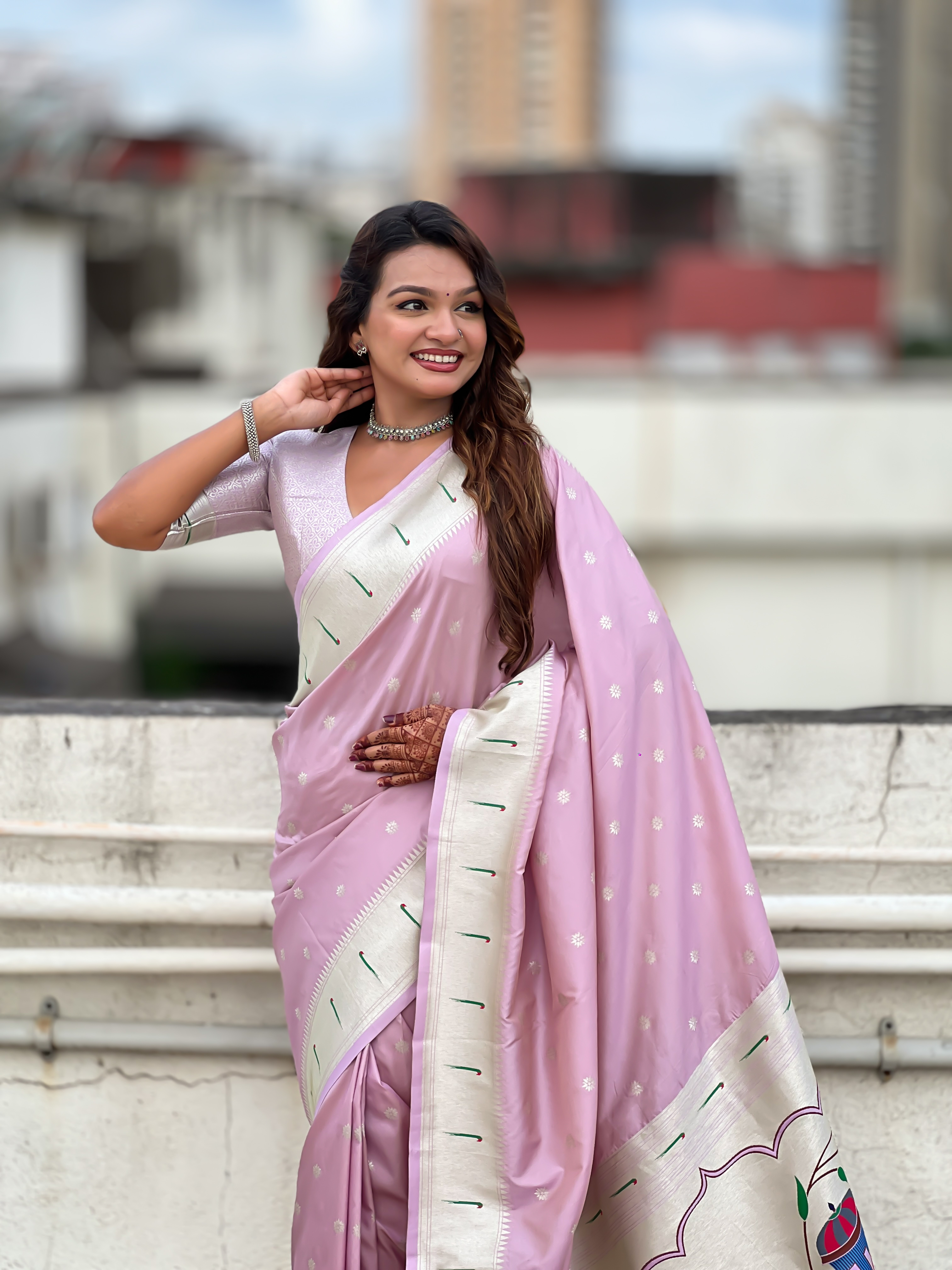 Lavender Color Paithani Silk Woven Designer Ceremonial Partywear Saree