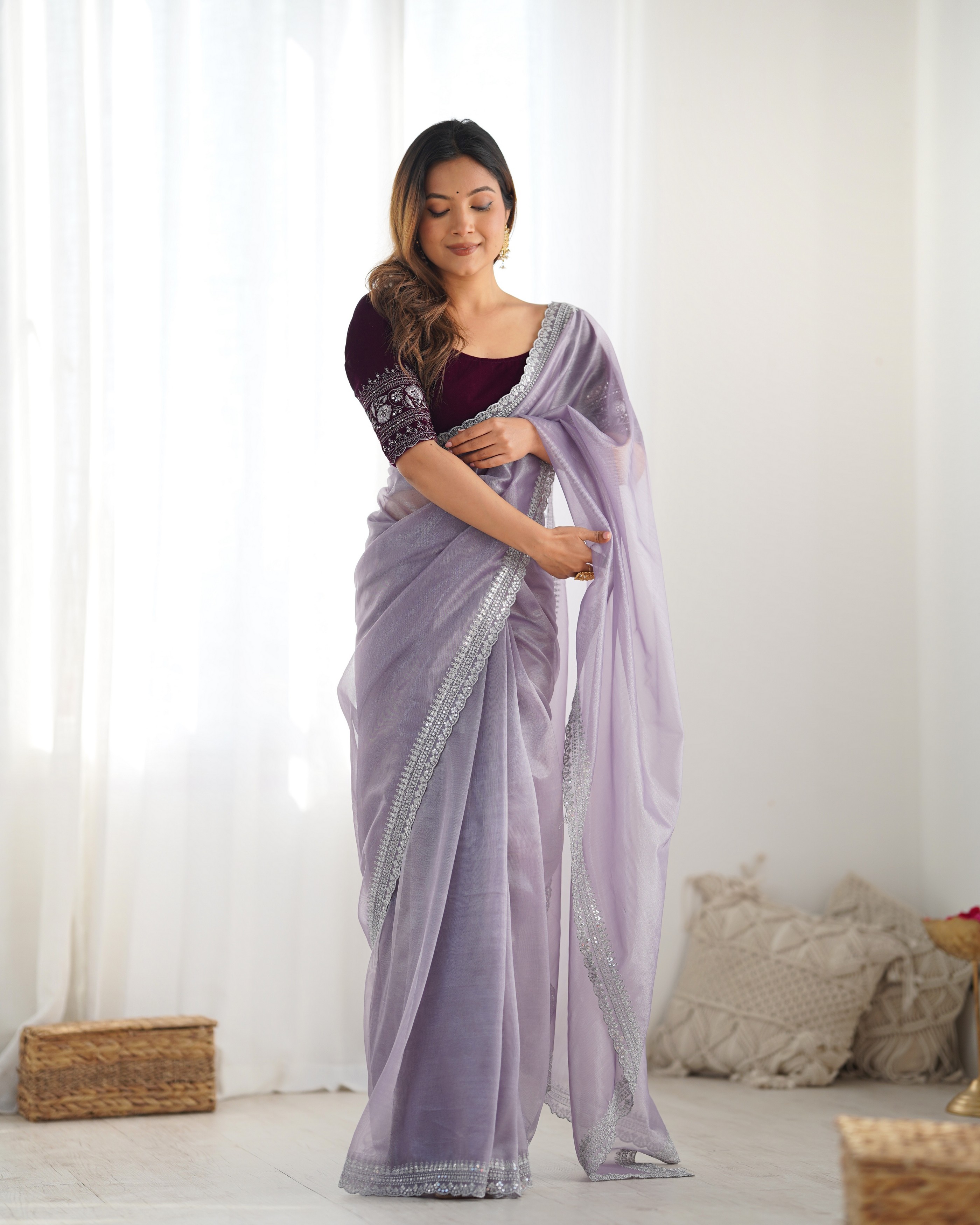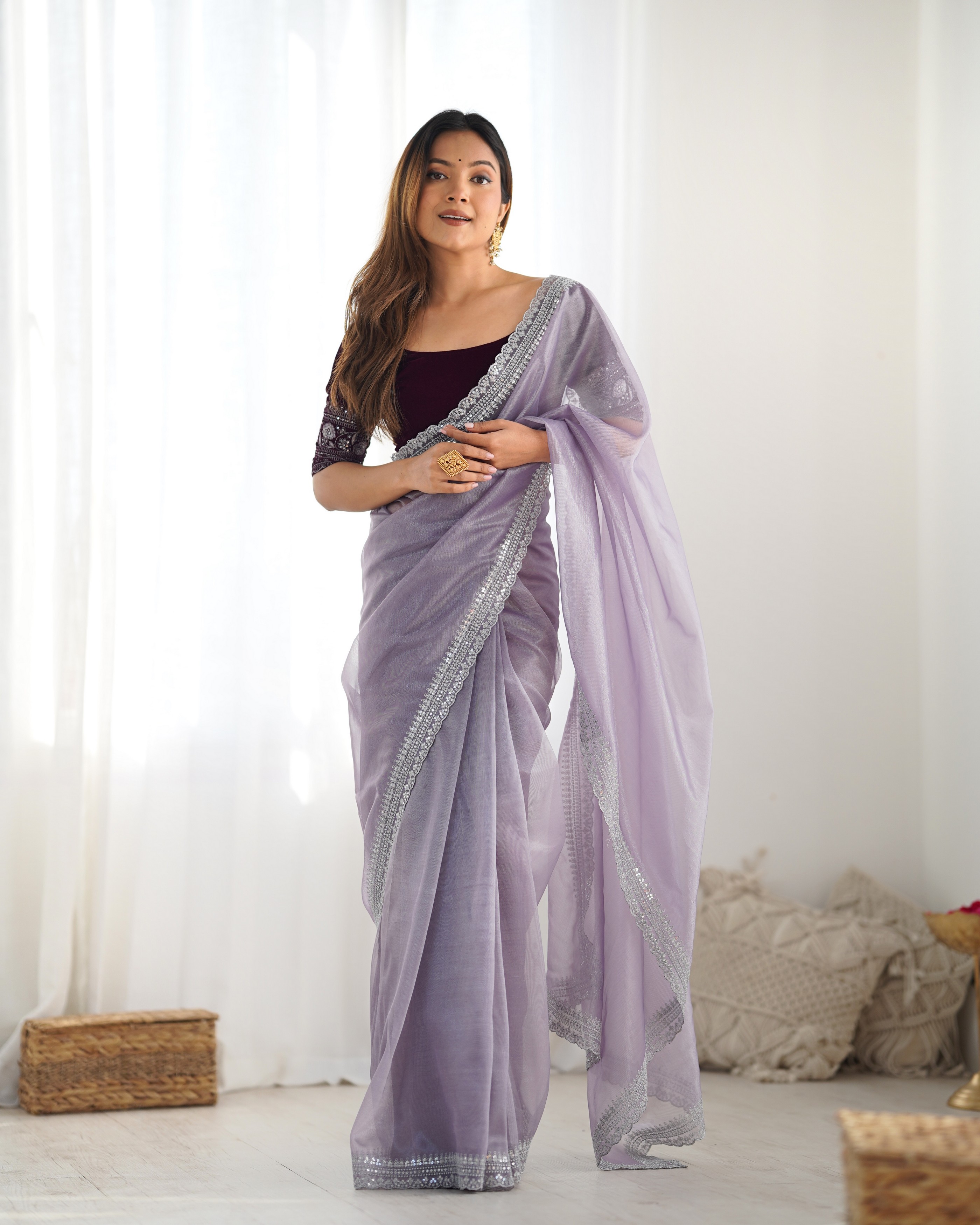 Lavender Color Twill Net Fabric Glamorous Bollywood Style Sequins Work Saree