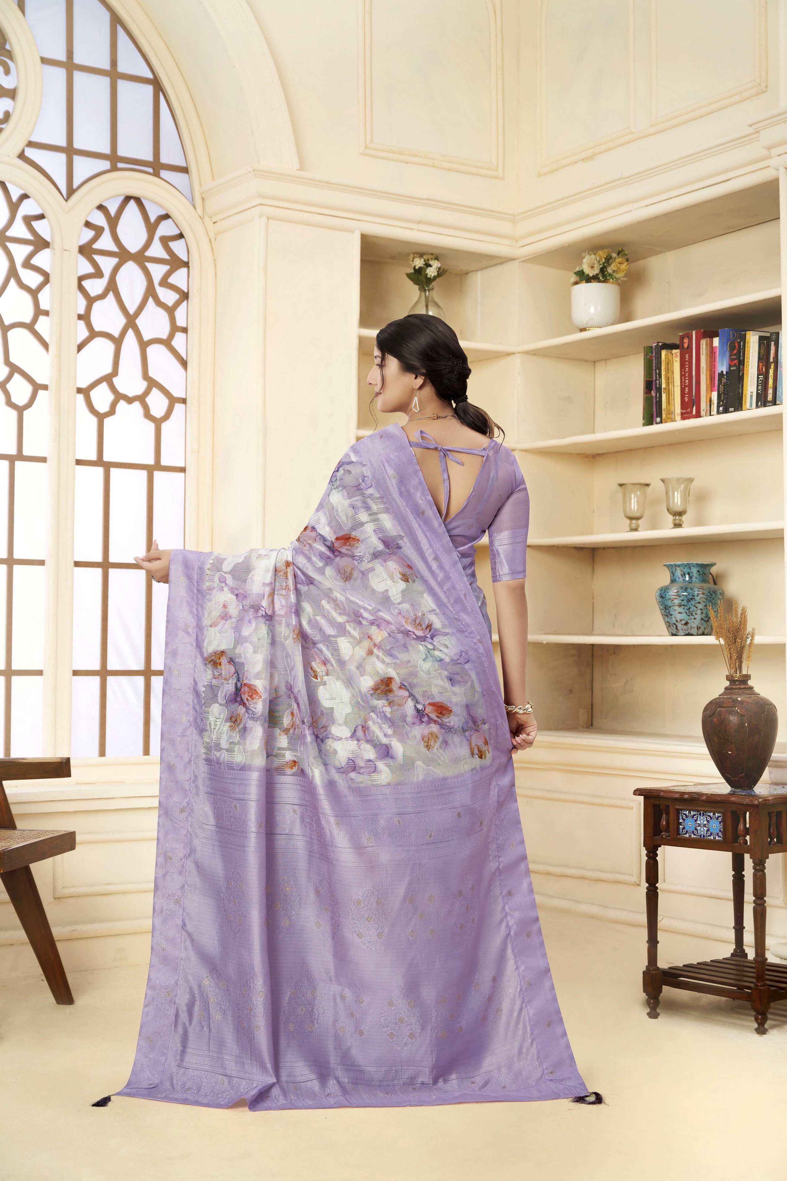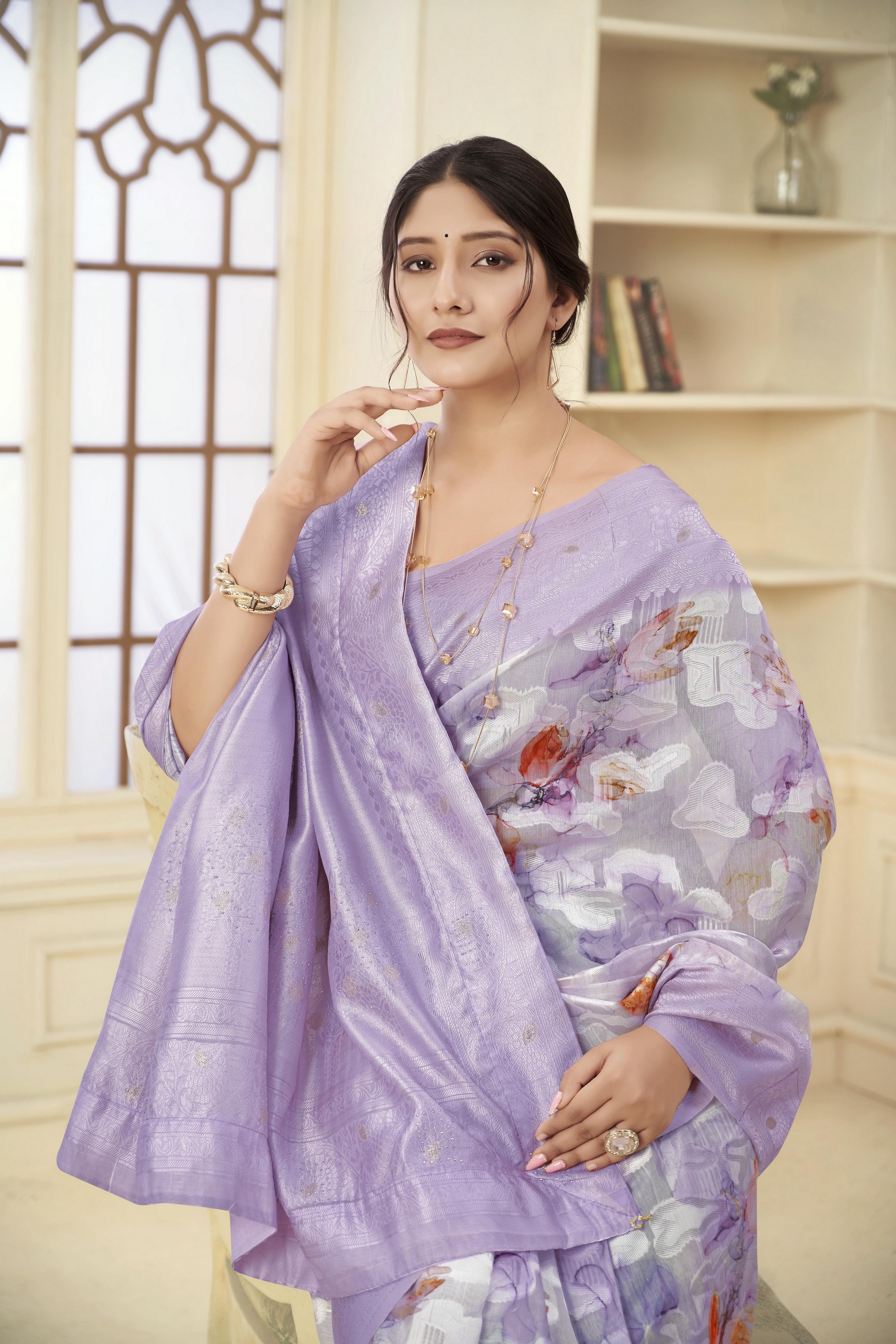 Lavender Color Wevon Jacquard Designer With Printed Rich Silk Fabric Stylish Ceremonial Saree