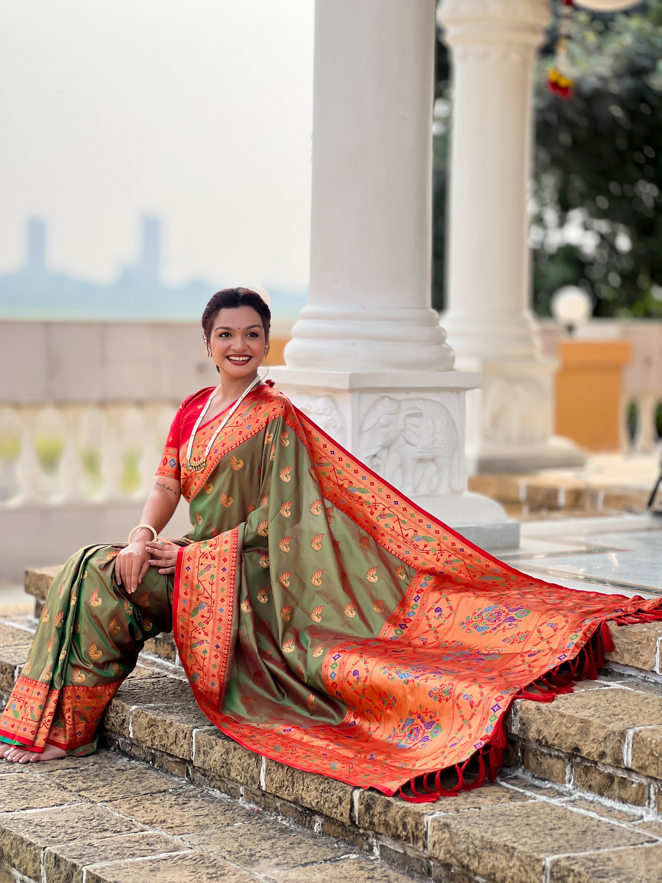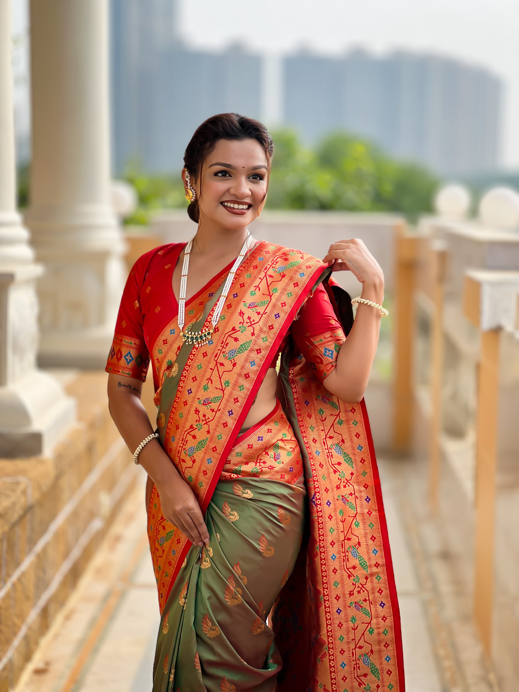 Mahendi Color Paithani Silk Woven Meenakari Jacquard Designer Saree