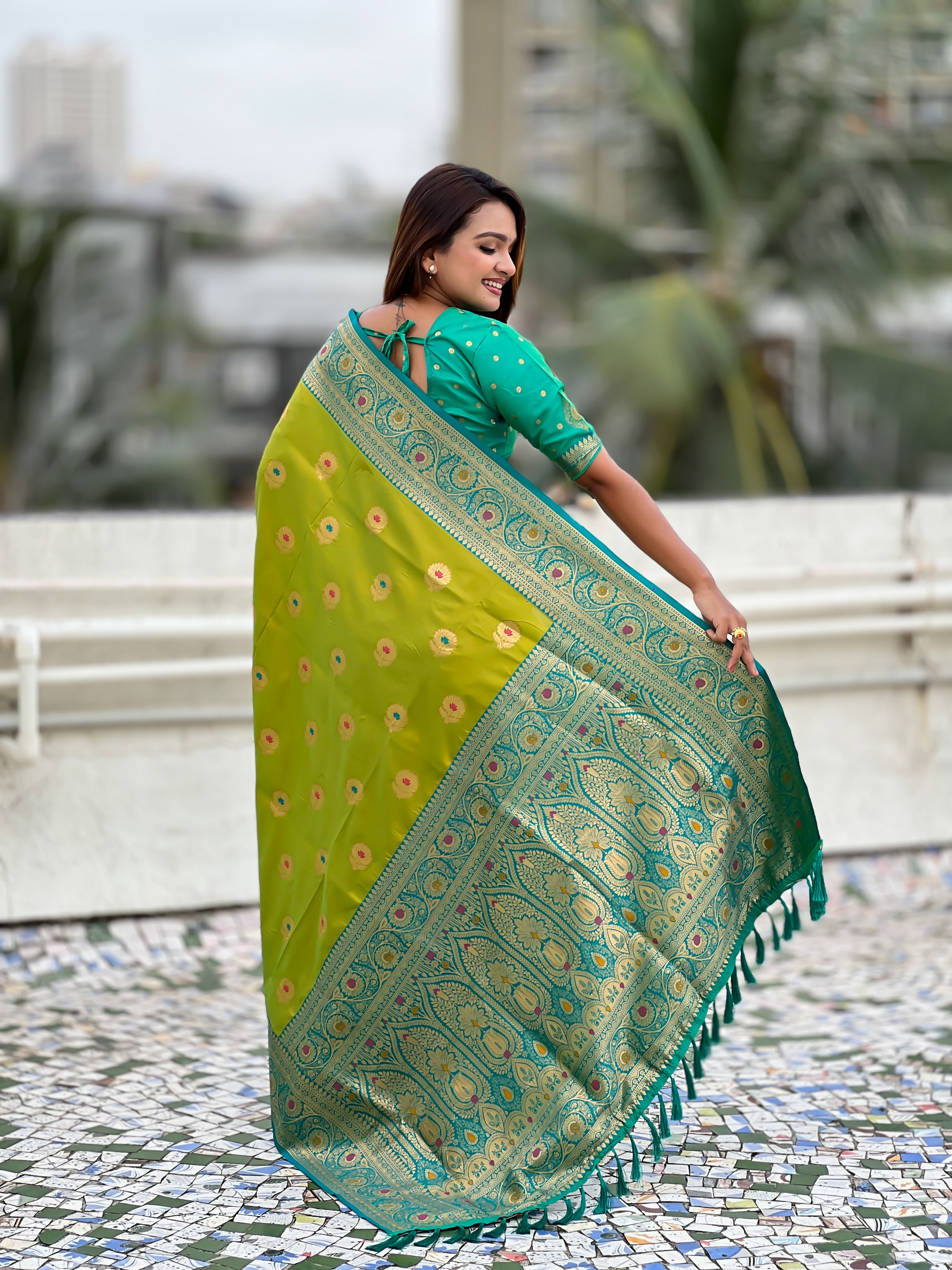 Mahendi Color Soft Silk Fabric Wevon Meenakari Designer Trending Partywear Saree