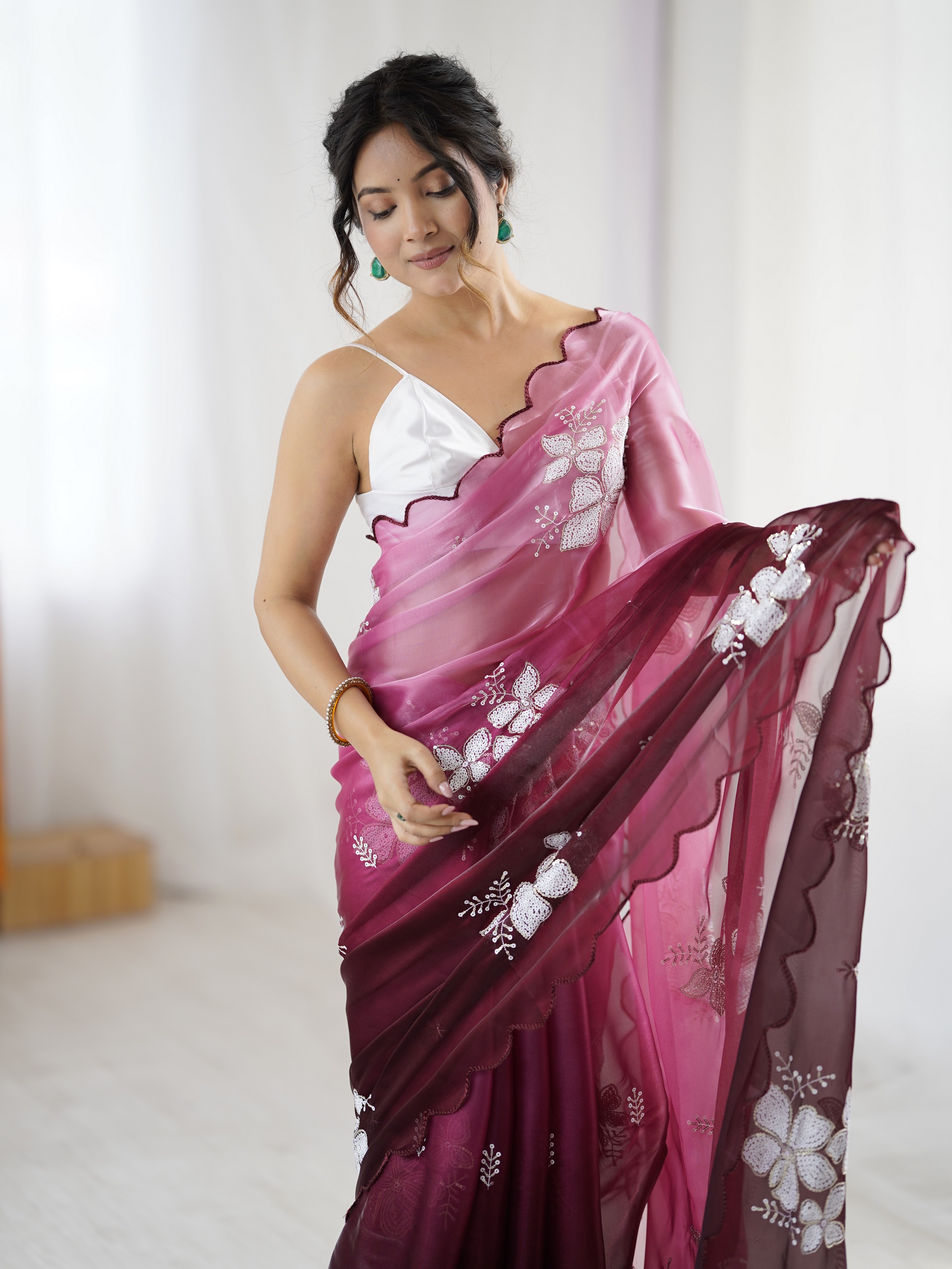 Maroon Color Glamorous Jimmy Choo Fabric Beautiful Embroidered Saree