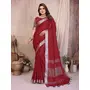 Maroon Color Linen Cotton Fabric Woven Silver Jari Designer Ceremonial Saree