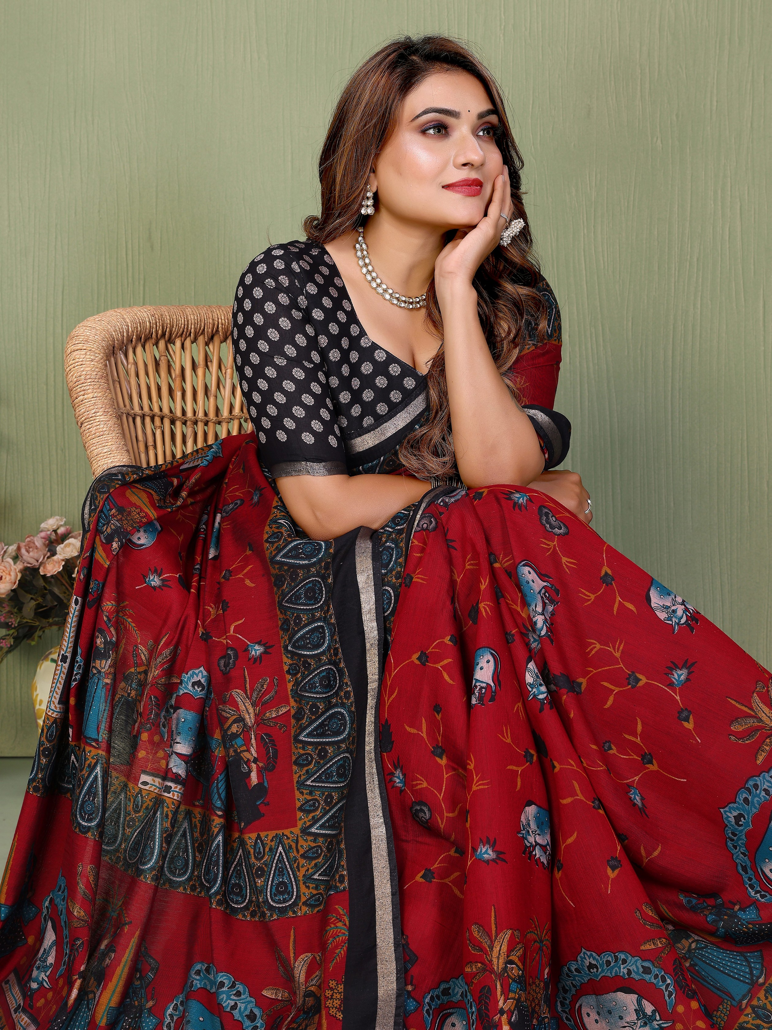 Maroon Color Mul Cotton Designer Kalamkari Printed Ethnic Partywear Saree